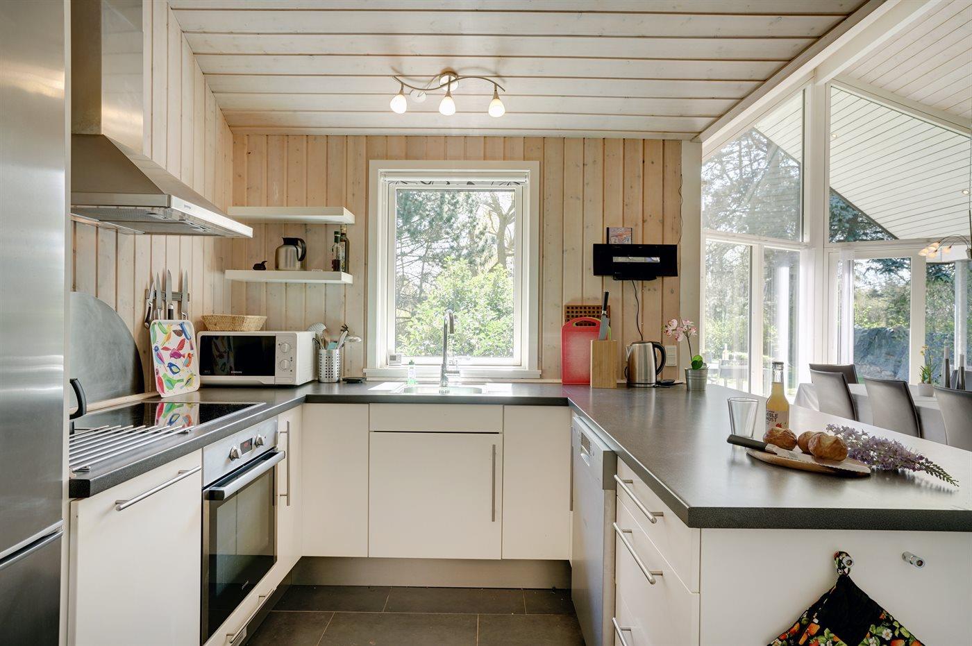 Køkkenet er udstyret med 2 køleskabe. Der er 4 keramiske kogeplader, varmluftovn, mikrobølgeovn samt opvaskemaskine.