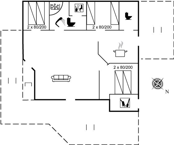 Der er i alt 3 soveværelser. Sovepladserne fordeler sig på: 6 sovepladser i dobbeltsenge. Derudover er der 1 stk. barneseng.