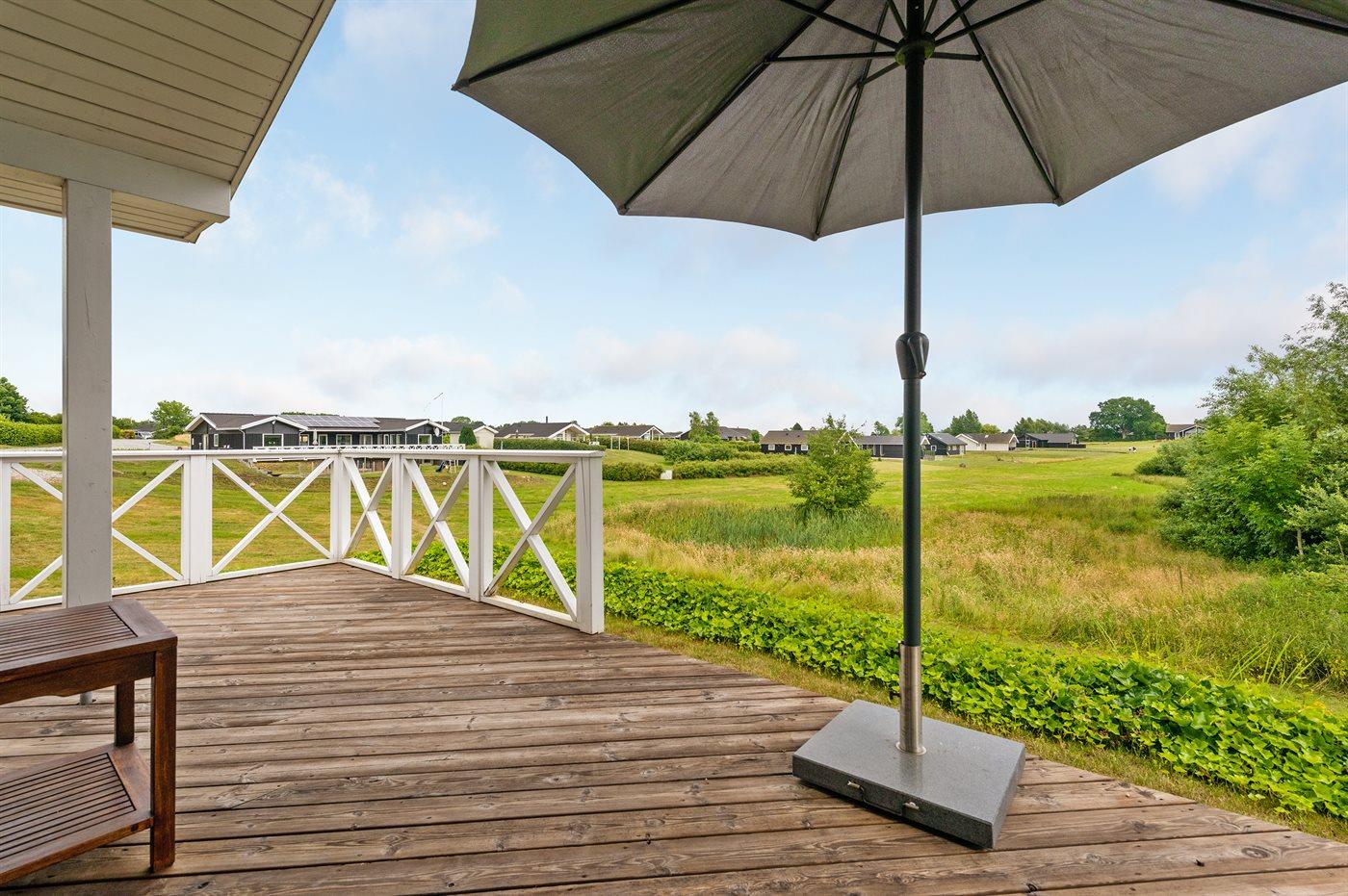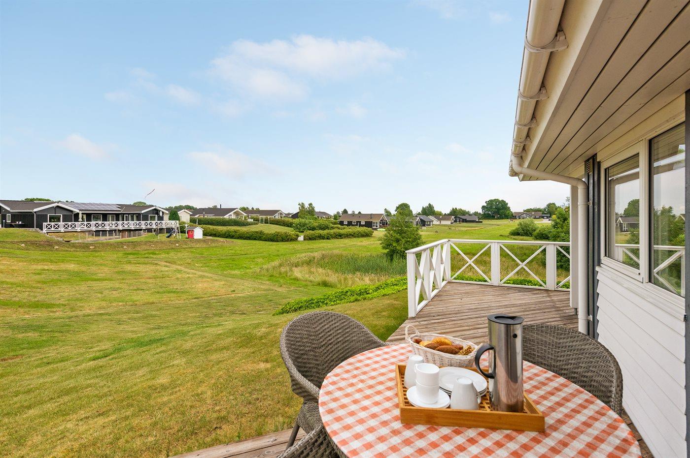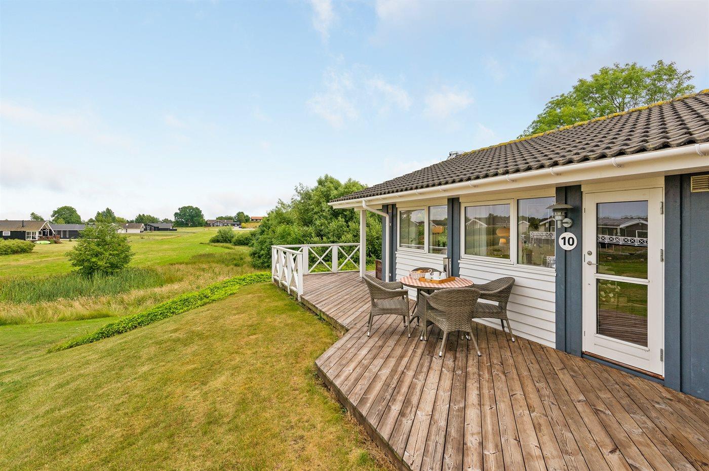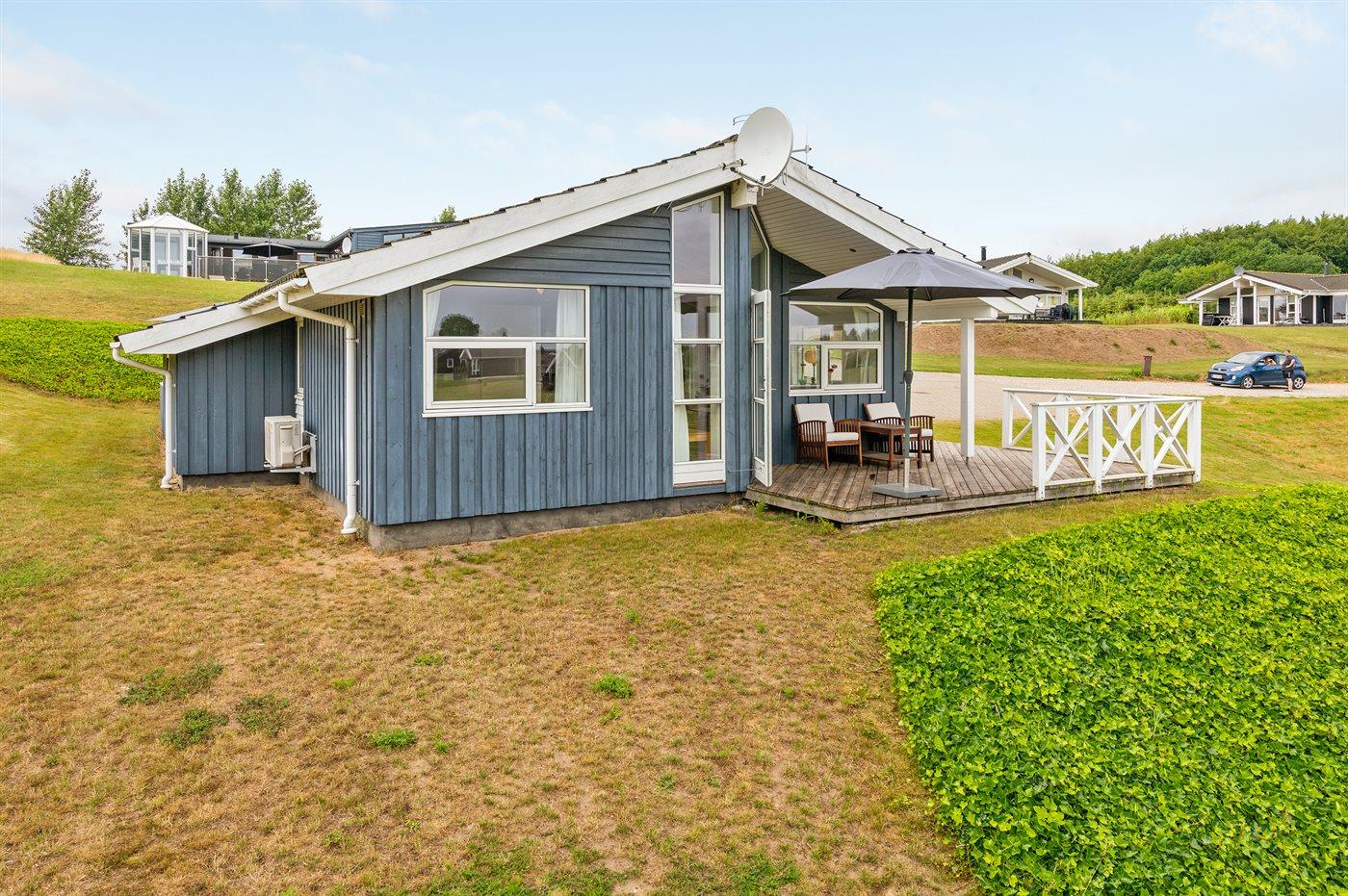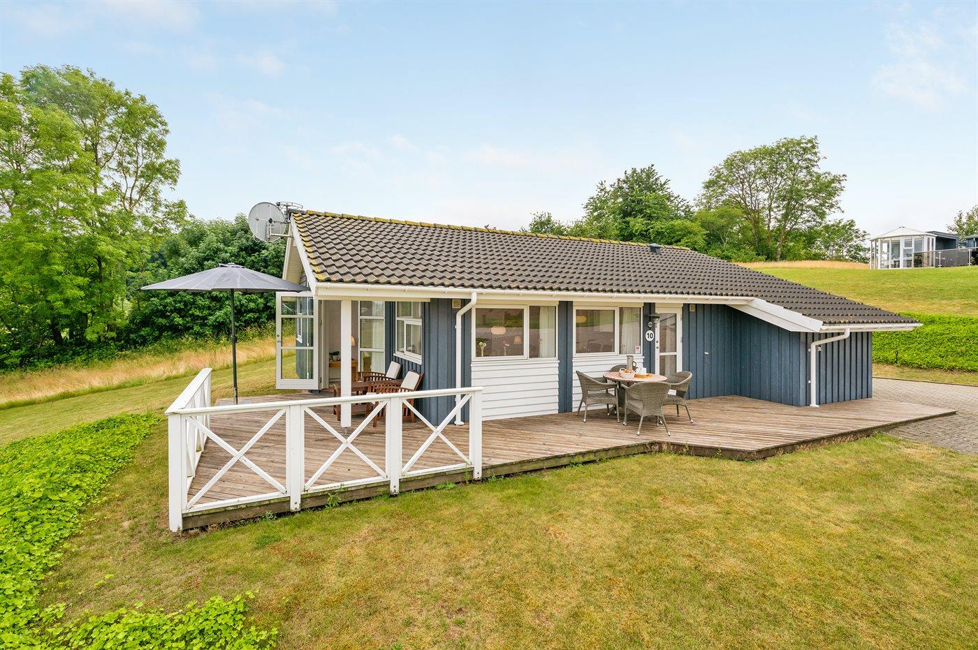 Højt beliggende ved Spodsbjerg ligger dette nydelige sommerhus oppe på en bakke med udsigt ud over området. Dejlige terrasser både foran og bagved huset, og god plads til udendørsaktiviteter på det store grønne område foran huset.