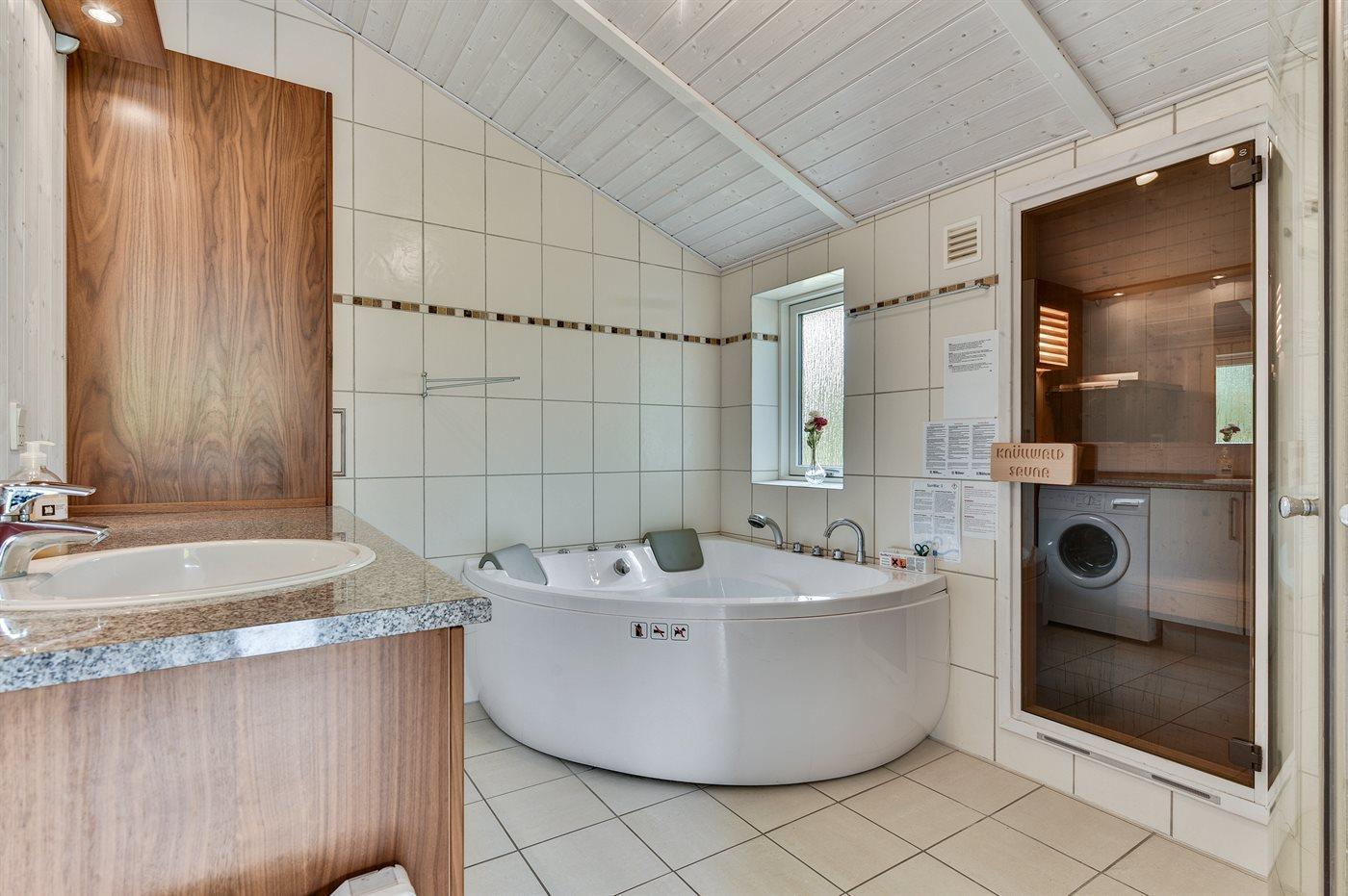 Der er 1 badeværelse med bruseniche og 2 toiletter, heraf 1 gæstetoilet. Der er gulvvarme på 1 badeværelse. I saunaen er der mulighed for afslapning.