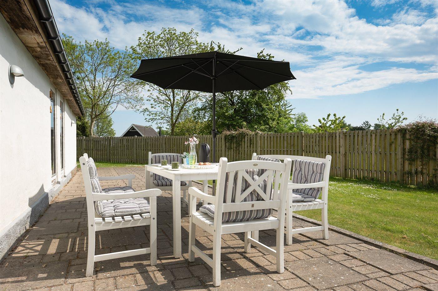 Ferieboligen er beliggende på en 2900 m² stor havegrund. Der er 200 m til havet. Nærmeste forretning er beliggende i en afstand af 1500 m. Til ferieboligen hører 200 m² terrasseareal. Gynge. Grill til rådighed. Der er installeret stik til opladning af elbil. Type 2 stik. Med 22 kW ladeeffekt. Parkering ved ferieboligen.