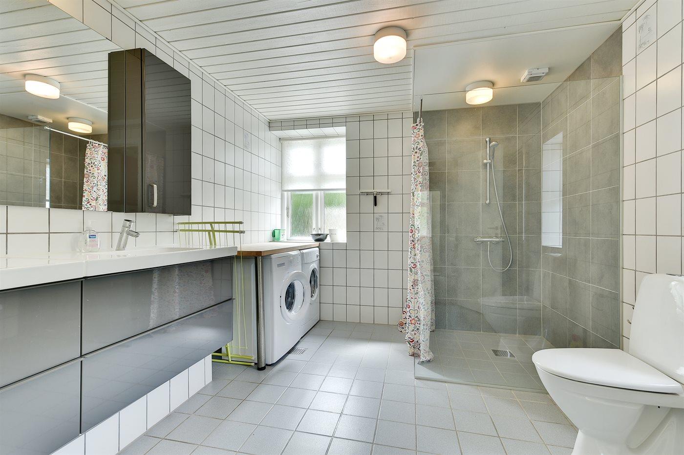 Der er 4 badeværelser med bruseniche og 5 toiletter, heraf 1 gæstetoilet. Der er gulvvarme på 3 badeværelser.