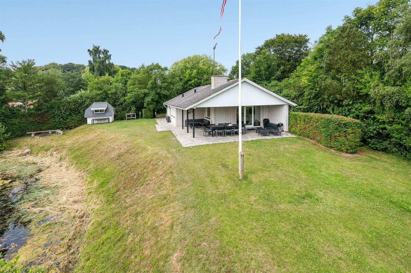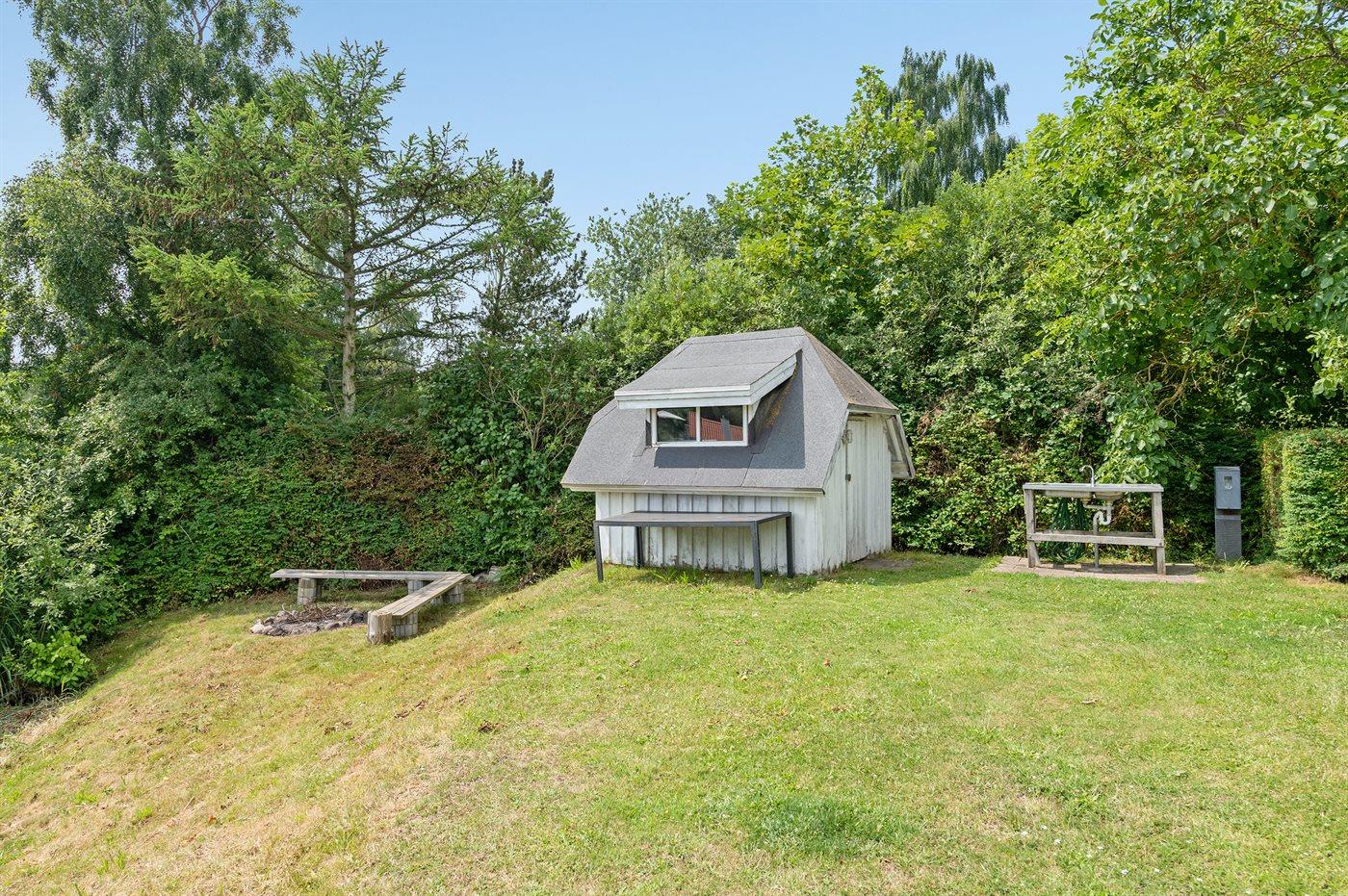 Ferieboligen er beliggende på en 1398 m² stor havegrund. Der er 350 m til havet. Der er en sø i en afstand af 5 m. Nærmeste forretning er beliggende i en afstand af 4500 m. Til ferieboligen hører 50 m² terrasseareal. Desuden er der 35 m² overdækket terrasse. Der er redskabsrum. Sandkasse. Bålsted. På lune aftener sørger en udendørs pejs for hyggelig stemning. Grill til rådighed. Parkering ved ferieboligen.