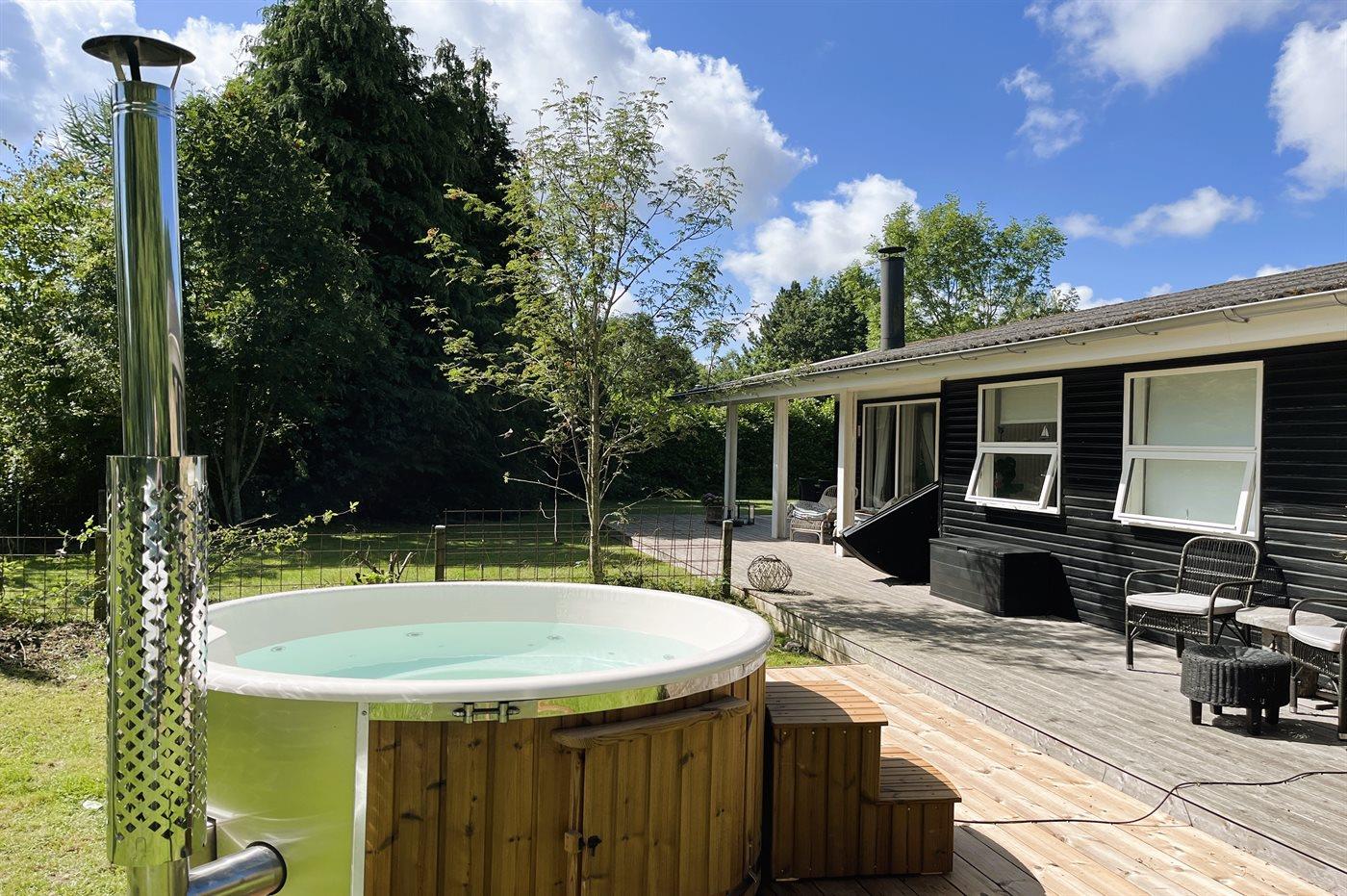 Hyggeligt og nyistandsat sommerhus med søudsigt og vildmarkskar i populære Spodsbjerg.