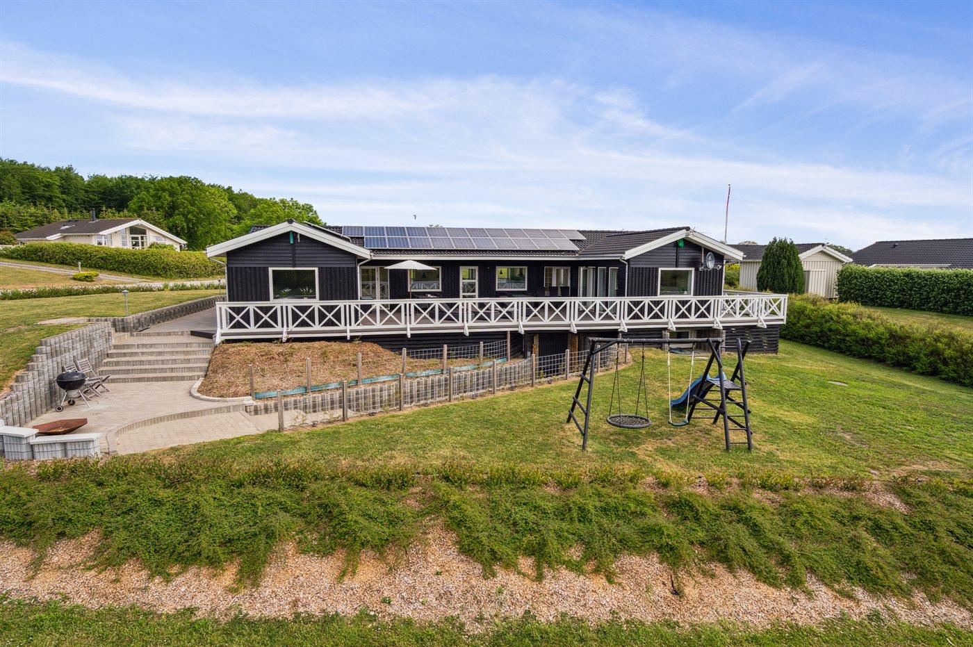 Stort og moderne sommerhus med spa, sauna og stor naturgrund nær havet i Spodsbjerg.
