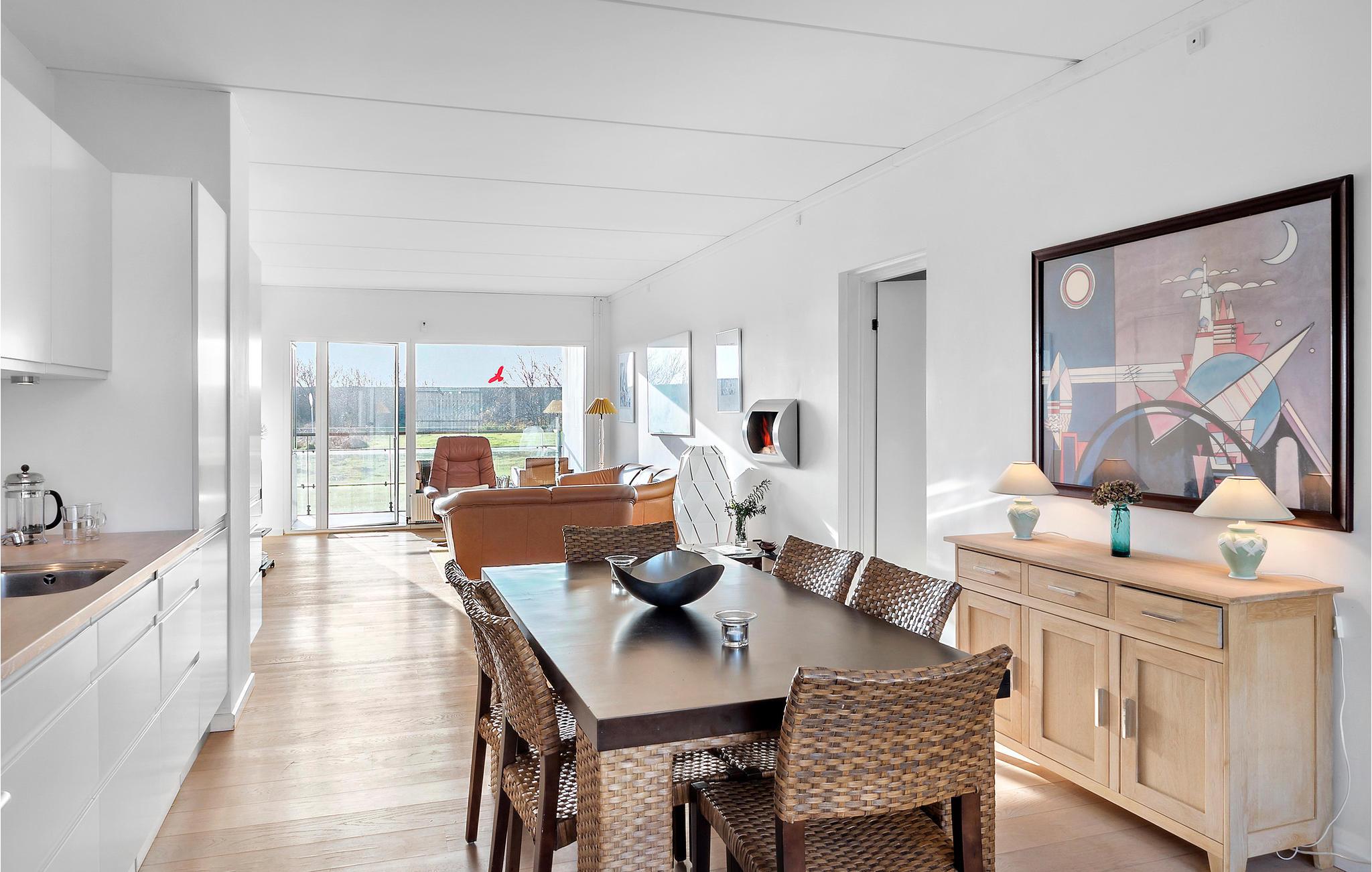 Kom ind og gør jer godt tilpas i det lyse interiør i dette charmerende feriehus. Brug det moderne køkken til at tilberede lækre fiskeretter og nyd måltider sammen ved det store spisebord. Slap af på de komfortable sofaer i stuen, mens I læser en god bog eller ser en film.