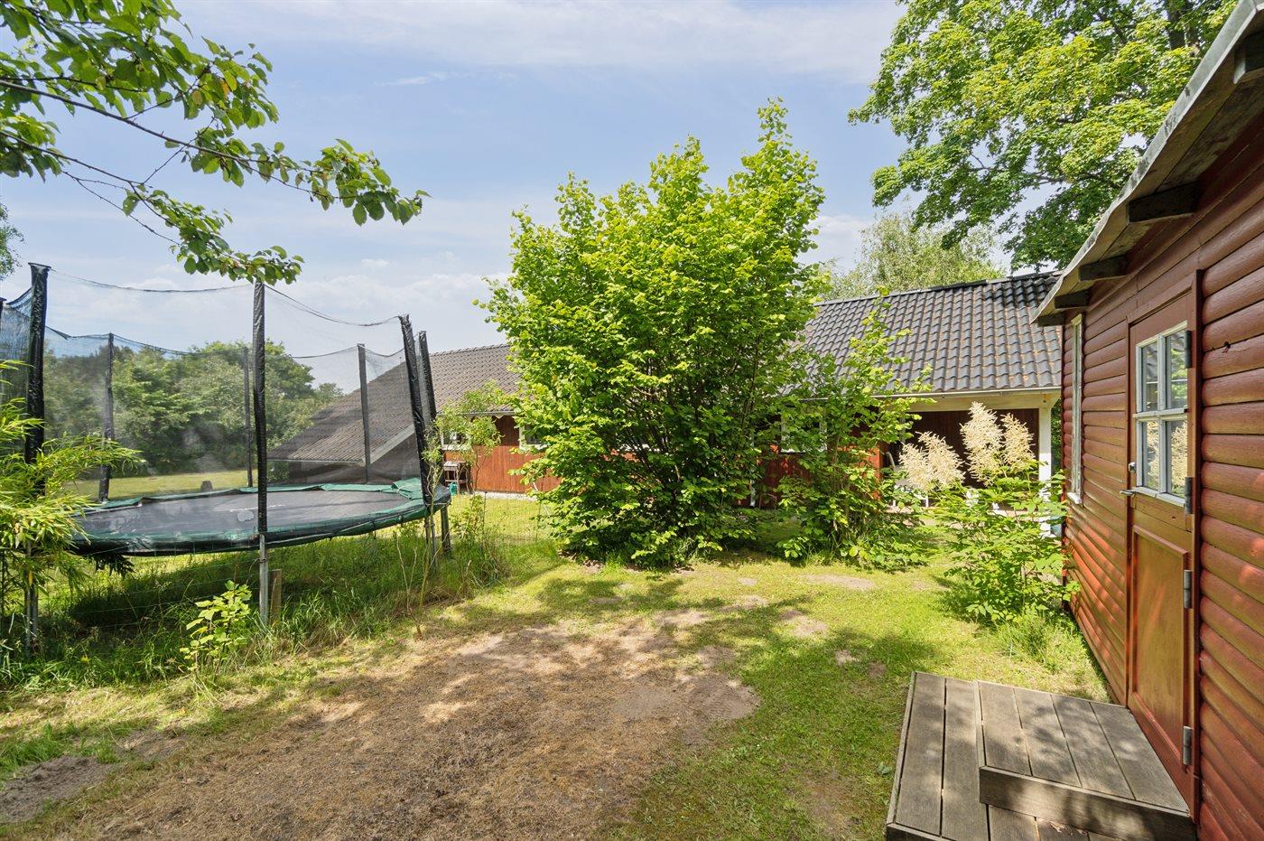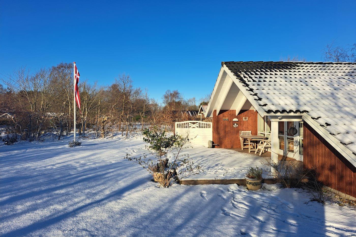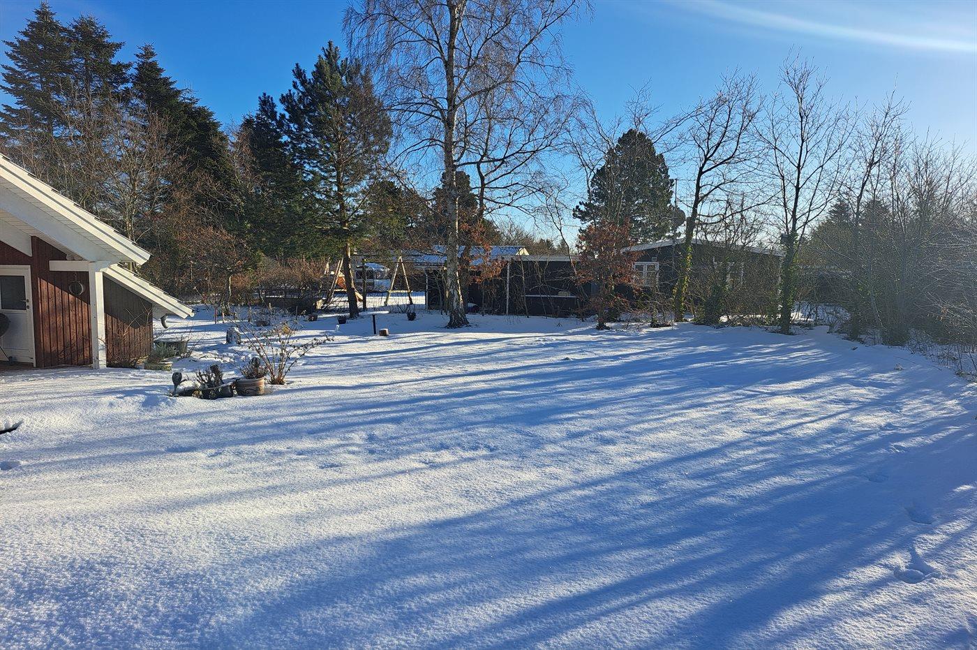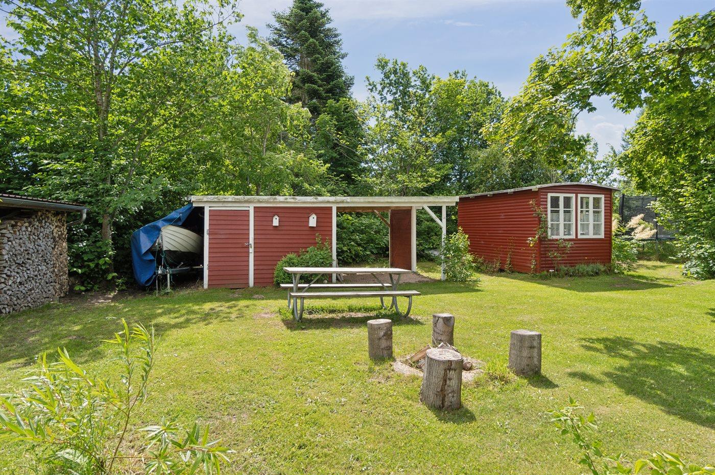 Ferieboligen er beliggende på en 1216 m² stor havegrund. Grunden er indhegnet. Der er 450 m til havet. Nærmeste forretning er beliggende i en afstand af 5000 m. Til ferieboligen hører åbent terrasseareal. Desuden er der overdækket terrasse. Gynge. Sandkasse. Trampolin. Bålsted. Weber gasgrill til rådighed. Parkering ved ferieboligen.