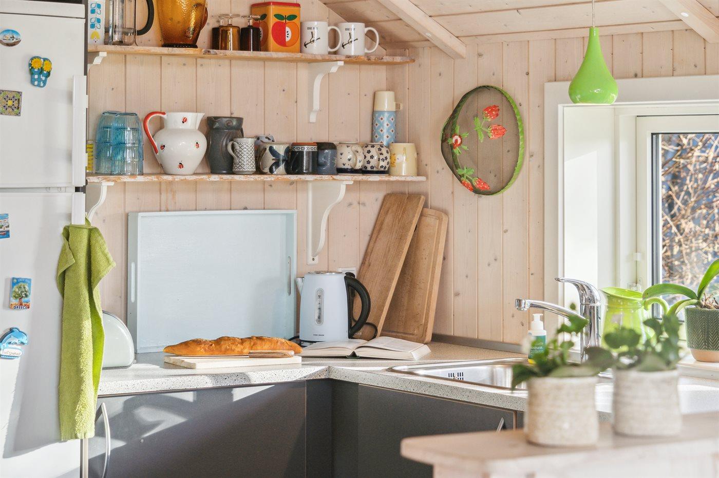Køkkenet er udstyret med 1 køleskab. Der er 4 induktionskogeplader, varmluftovn.