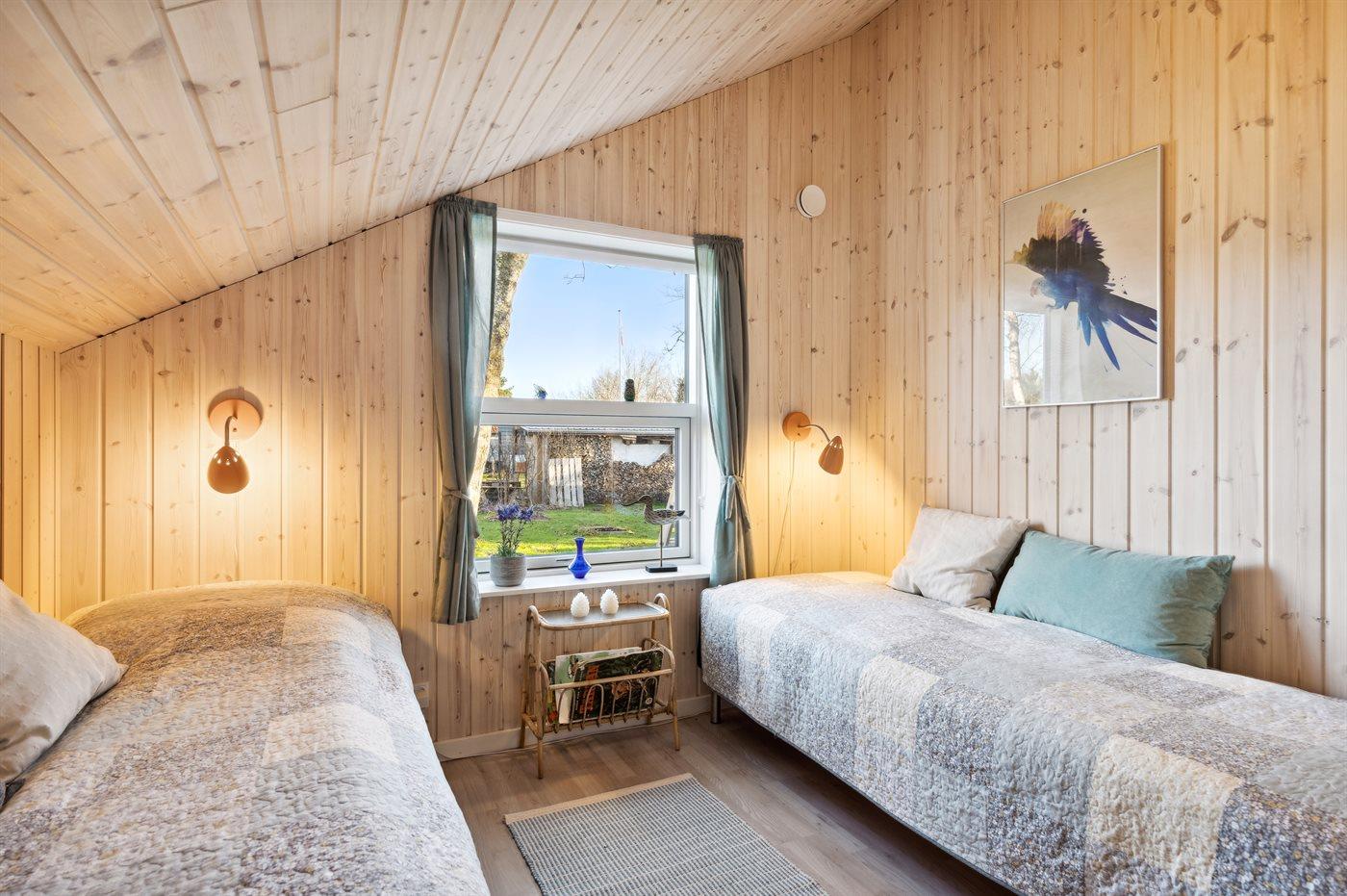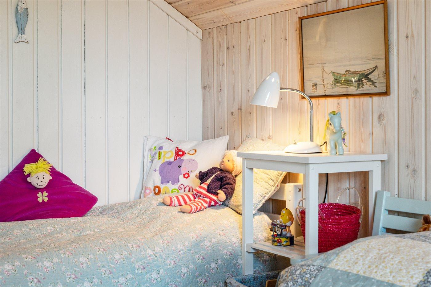 Der er i alt 3 soveværelser. Sovepladserne fordeler sig på: 2 sovepladser i dobbeltseng. 2 sovepladser i enkeltsenge. 2 sovepladser i køjeseng. 1 soveplads i sovesofa (enkelt). 2 sovepladser i alkove. Derudover er der 1 stk. barneseng.