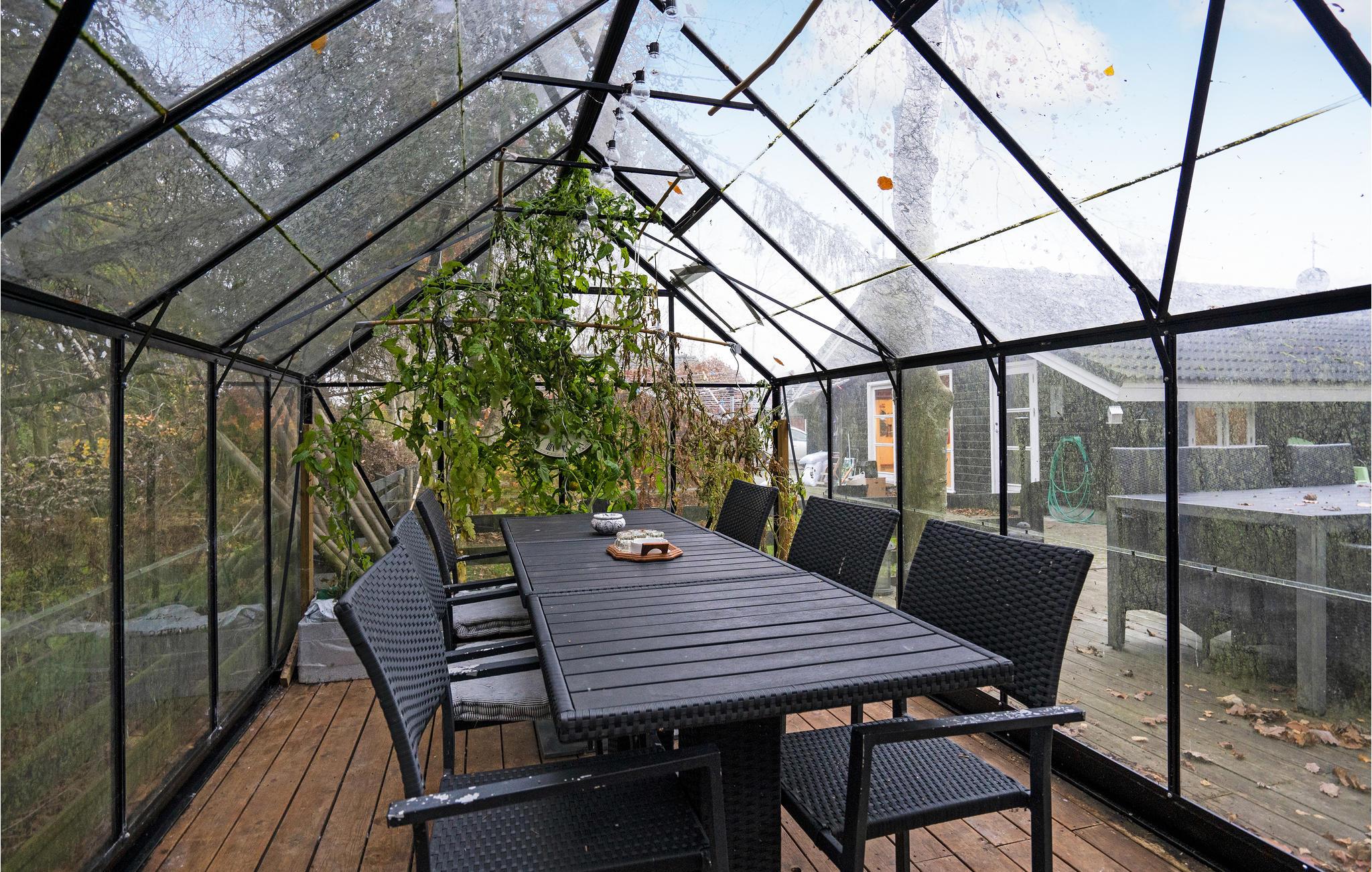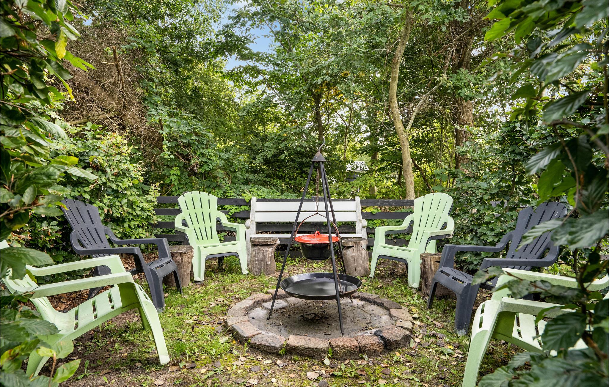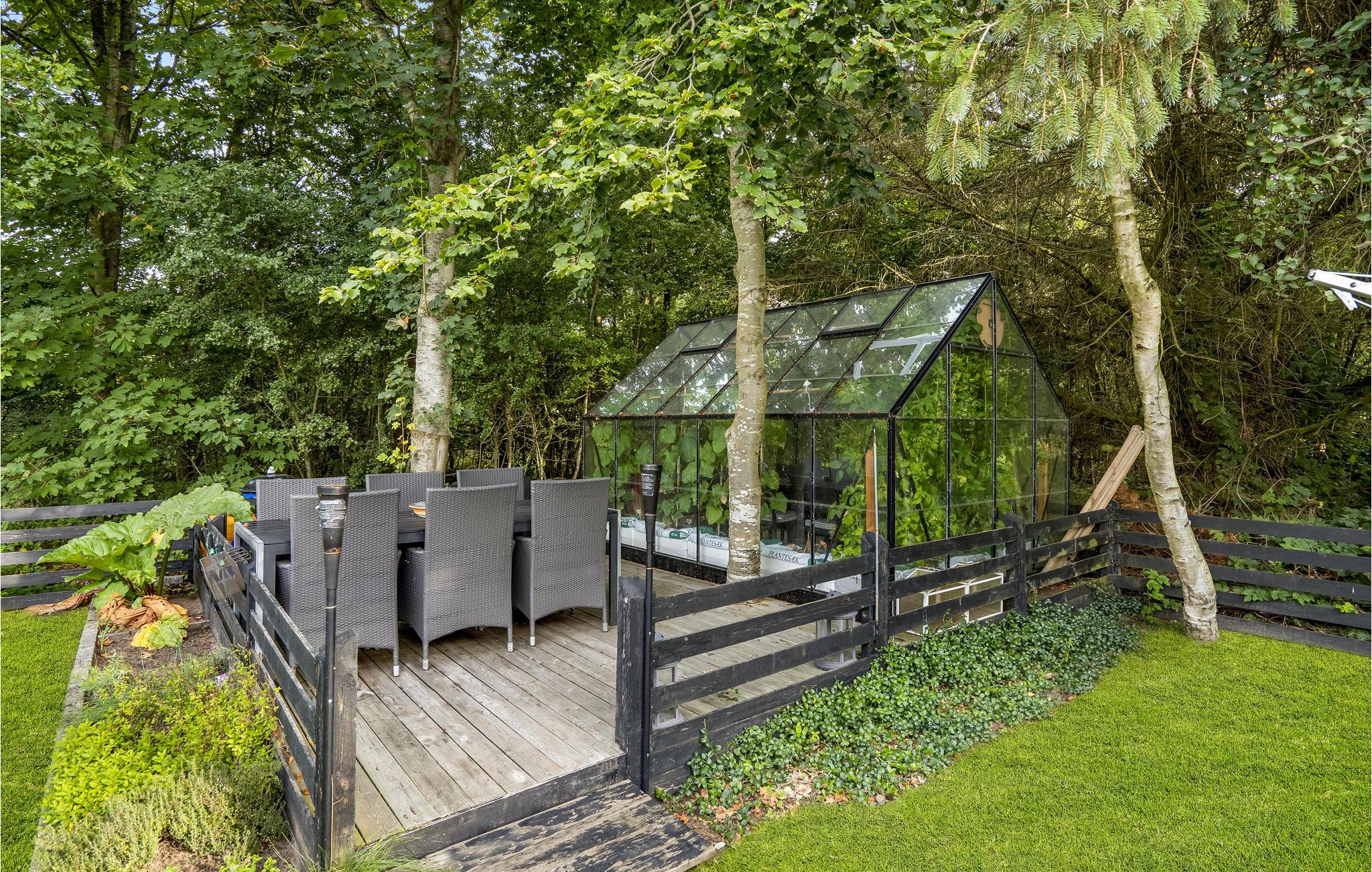 Den indhegnede have er omgivet af gamle træer, som er en skøn lille oase for både børn og voksne. Nyd den fredfyldte atmosfære på terrassen, mens børnene gynger, og jeres hunde snuser rundt på grunden.