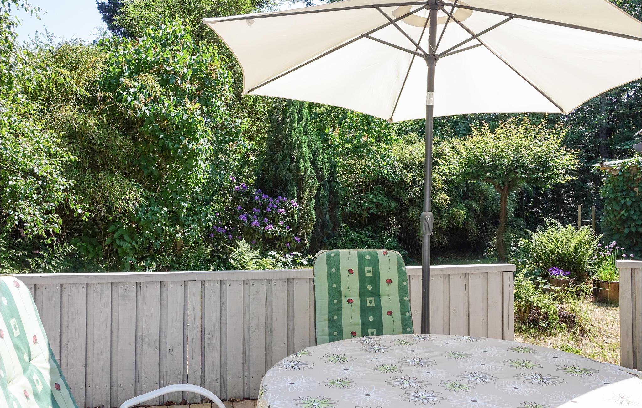 Dejligt og pænt sommerhus på en stor, skovklædt naturgrund i eftertragtede Stampen, lidt uden for Rønne (4 km til centrum) og kun 400 meter fra en børnevenlig sandstrand.
