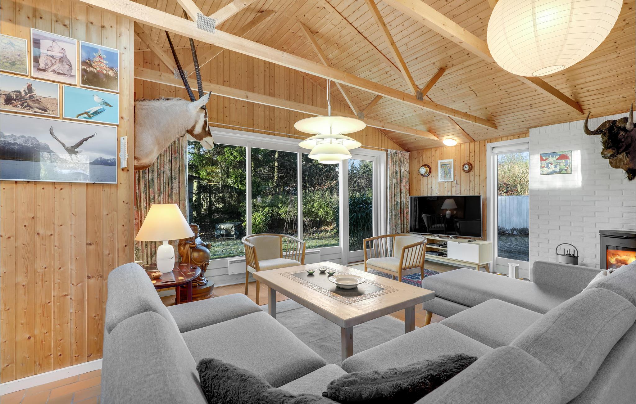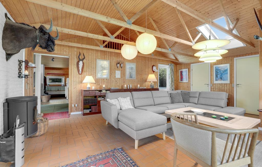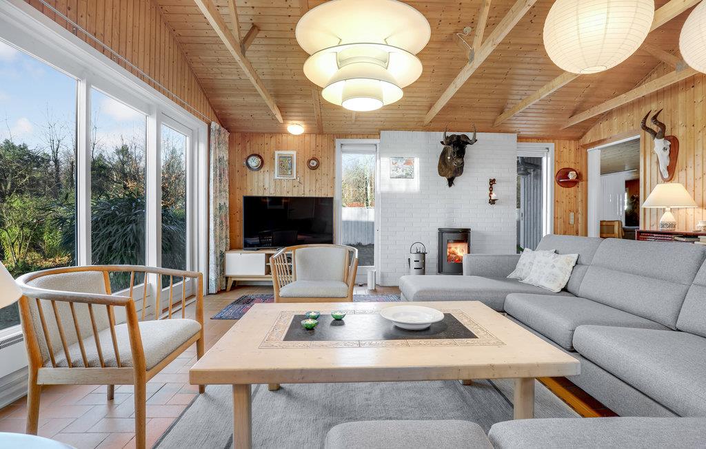 Velkommen til dette hyggelige sommerhus, der består af tre gode soveværelser, to dejlige opholdsstuer, et åbent, veludstyret køkken og et fint badeværelse med gulvvarme. Den ene opholdsstue har gulvvarme, brændeovn, TV/DVD/Blu-ray og udgang til haven og en østvendt terrasse med komfortable havemøbler. Den anden opholdsstue har også en brændeovn, radio/CD, en dobbelt sovesofa og udgang til en sydvestvendt, delvist overdækket terrasse med havemøbler og en grill til hyggelige grillaftener.