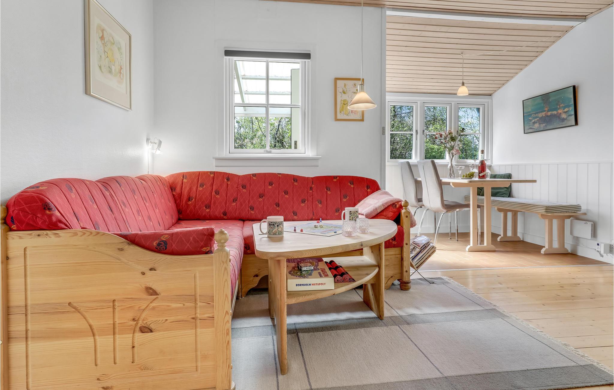 Charmerende, velindrettet sommerhus beliggende på en dejlig grund i det populære område kaldet Stampen, og med kun 500 m til fredelig og børnevenlig flot sandstrand. Husets stue er indrettet med spisebord med udsigt mod haven og hyggeligt sofahjørne vendt mod brændeovn med glaslåge.