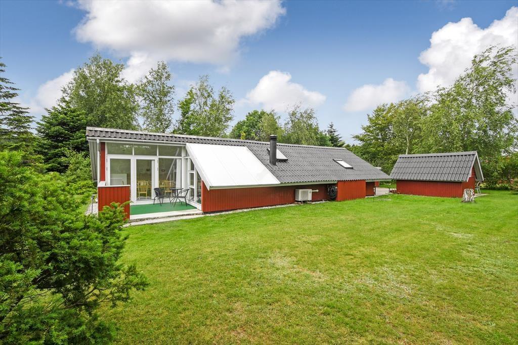 Sommerhuset har ligget i Halbys fredelige og naturskønne omgivelser siden 1979, men der er sket meget i mellemtiden. Blandt andet er både badeværelset og det åbne køkken blevet moderniseret, og huset er også blevet udvidet med en helårsisoleret havestue, hvor I virkelig kan nyde det flotte lysindfald og udsigten til den grønne have. Er det ikke her, I tilbringer tiden, kan familiesamværet foregå i den tilstødende stue, hvor I kan skrue op for hyggestemningen ved at tænde op i brændeovnen eller måske sætte en god film på TV’ets DVD-afspiller. Er det ved at være sengetid, kan I gøre klar til en god nats søvn på sommerhusets to soveværelser og i annekset, der i alt har plads til fire voksne og to børn.