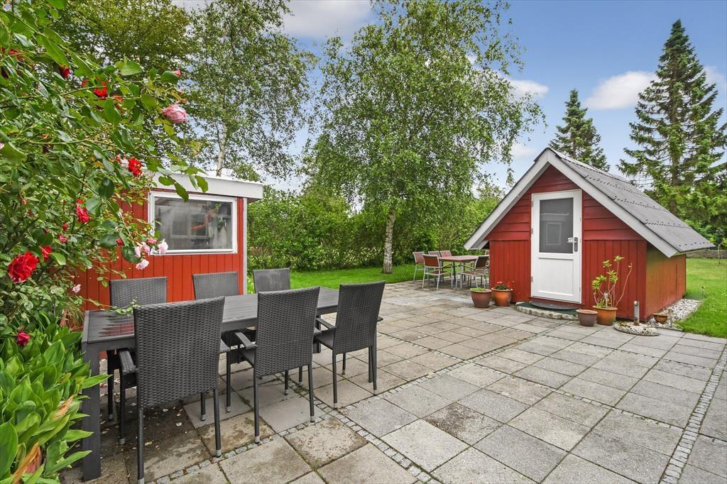 Både børn og voksne kan glæde sig til at nyde livet i haven. Grunden er med sine 1200 m2 ganske stor, og derfor er der god plads til at lege og skyde med vandpistol på græsplænen. Vil I hellere solbade eller hygge jer over en god frokost, er sommerhusets terrasser helt perfekte: Der er endda flere at vælge imellem, så I kan sætte jer lige der, hvor solforholdene er bedst.
