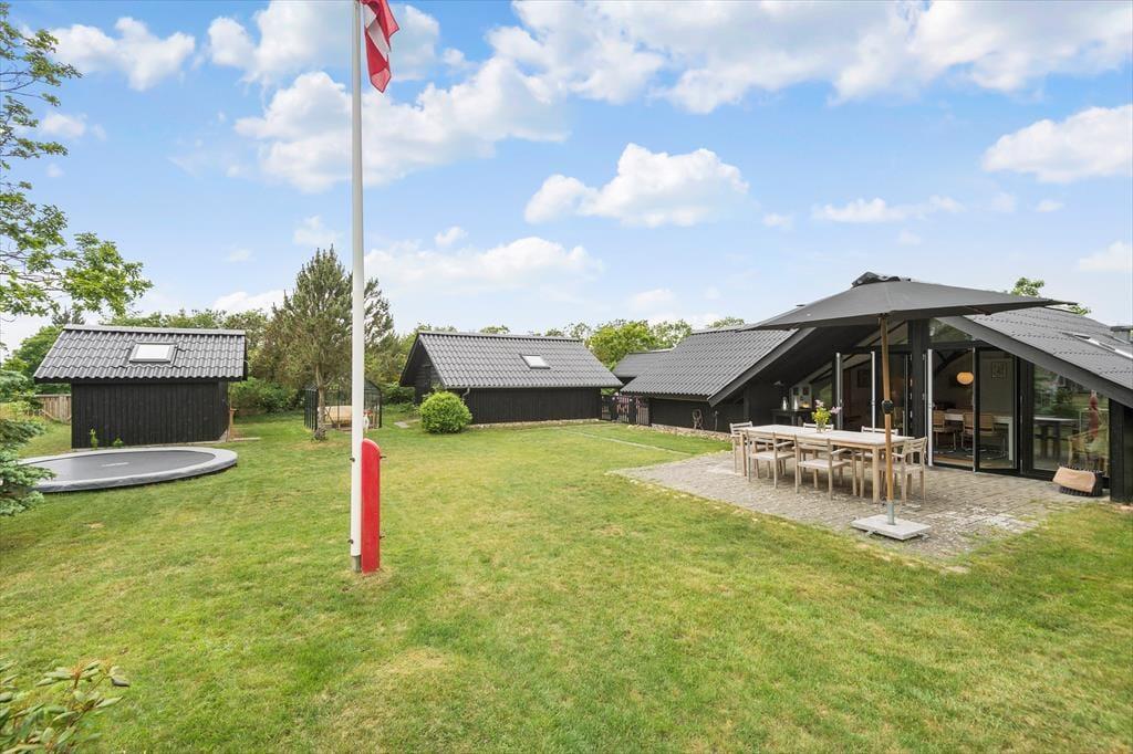 Holder I ferie om sommeren, kommer I formentlig til at tilbringe en stor del af solskinstimerne ude på den 1073 m2 store grund, der er indhegnet, fra grunden er der direkte udsigt til Ringkøbing Fjord. På grunden forefindes ligeledes et lille orangeri, hvor I kan sidde også på dage hvor det drypper lidt. Og har man brug for et koldt brusebad på de varme dage så er det også en mulighed. I det hele taget en dejlig grund med rigtig mange gode hyggepladser rundt omkring.
