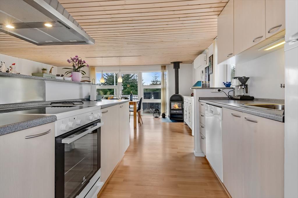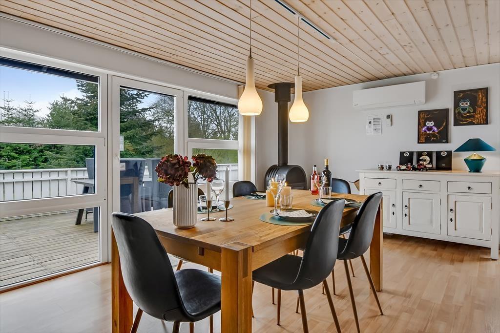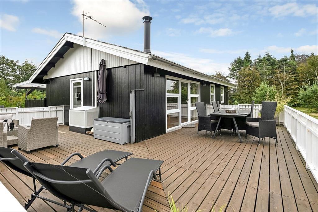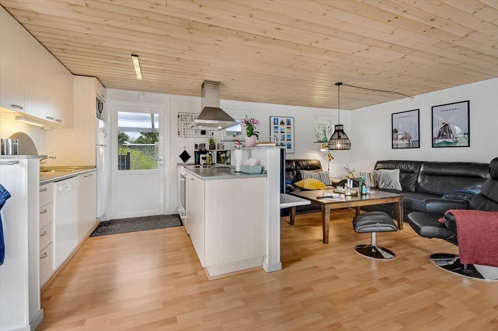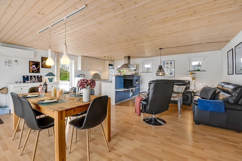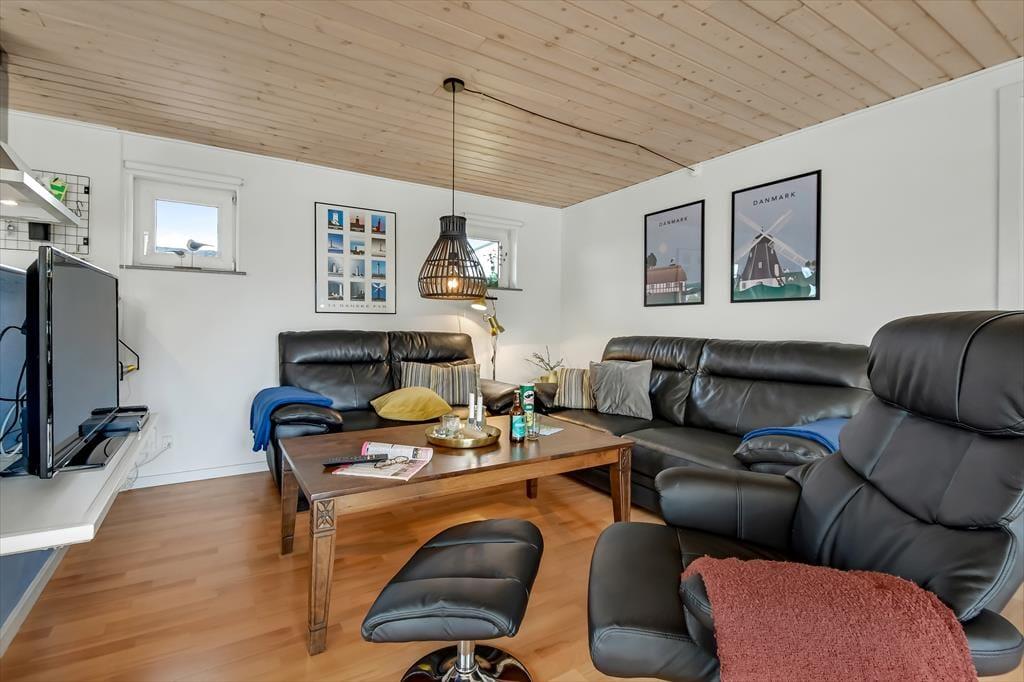 Den velplejede, sortmalede træfacade er et godt eksempel på, at der bliver taget godt hånd om huset, og at renoveringen sker løbende. I 2024 er huset ligeledes blevet malet inden døre, så rummene fremstår pæne og indbydende. Planløsningen passer godt til fire personer, for der er to gode soveværelser og et pænt badeværelse at gøre godt med. Endelig ligger køkken og stue forenet, og det er sikkert her, at du og dine kære vil tilbringe de fleste af dagens vågne timer, når I vil slappe af indenfor. Er vejret køligt, vil du måske tænde op i brændeovnen, så den kan sprede ekstra varme og hyggestemning, mens familien spiller brætspil ved spisebordet, laver lækker mad eller ser film i sofaafdelingen.