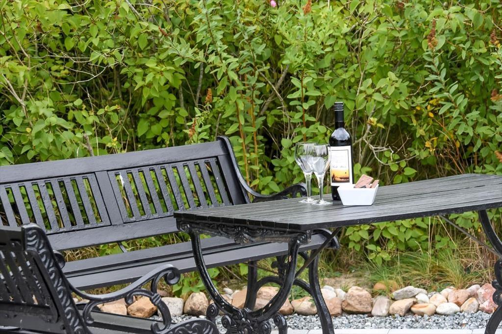 Sommerhusets naturgrund er stor og skøn, og i forlængelse af sommerhuset er der to gode terrasser at vælge imellem. Den ene har netop fået ny overdækning i 2024, og det er en rar detalje, hvis en lille sommerbyge skulle passere forbi, eller hvis du gerne vil sidde længe ude om aftenen, efter at duggen er faldet. Hvis du hellere vil sidde under åben himmel, kan driverlivet udspille sig på den sydvestvendte terrasse, der er dejligt solrig en stor del af dagen. Begge terrasser er for øvrigt helt aflukkede, hvilket familier med små børn eller hundeejere sikkert vil sætte pris på.