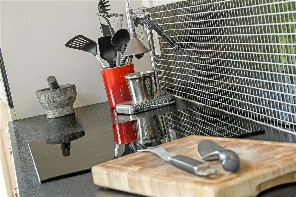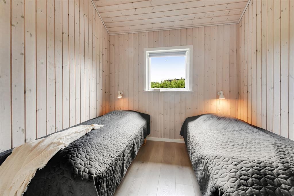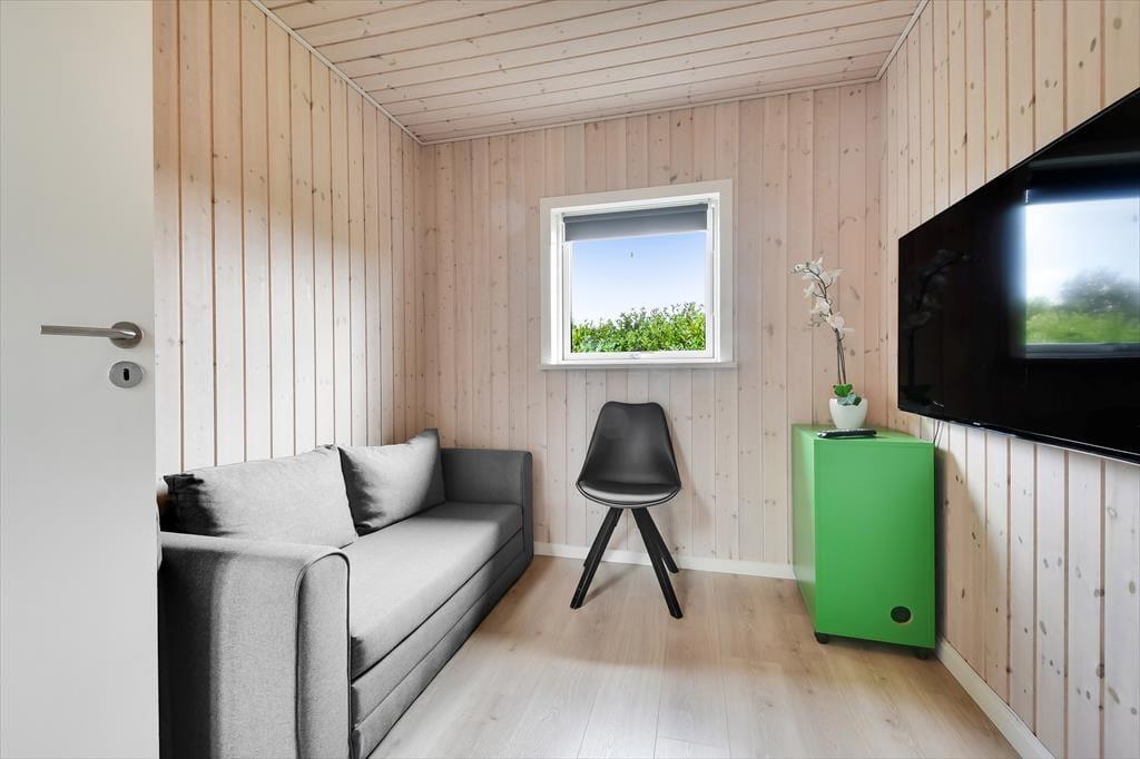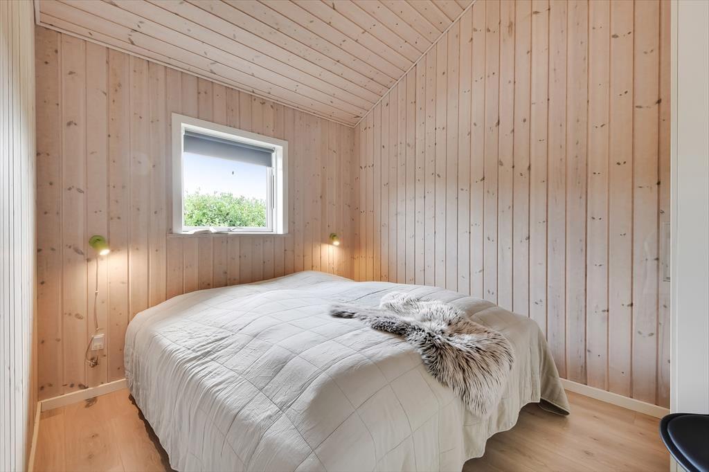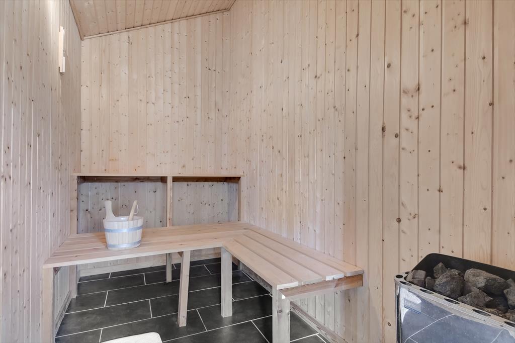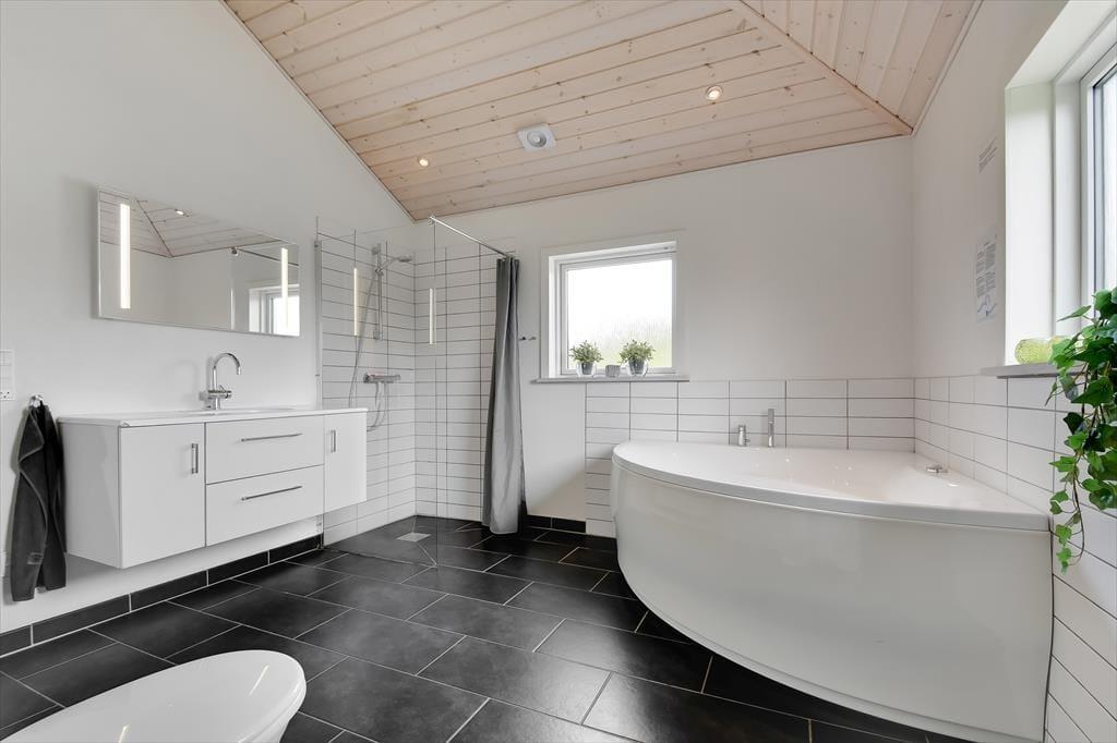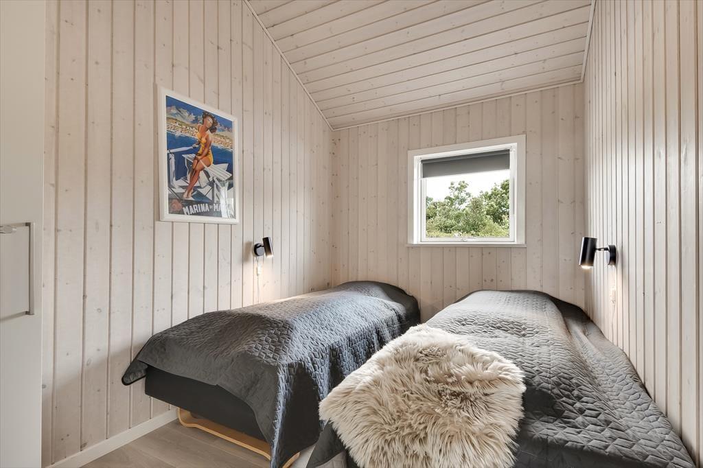 Allerede udefra står det klart, at der er tjek på tingene her på Rørkrogen 10. Sommerhuset præsenterer sig flot med mørk facade og hvide detaljer, og inden døre er atmosfæren lys og let. I opholdsafdelingen er der loft til kip og ovenlysvinduer såvel som store glaspartier, der skaber en god forbindelse til udearealerne. Det åbne køkken har godt med albueplads, så I kan sagtens være flere om at stå for madlavningen – hvis ikke du bare slår dig ned på en af barstolene for at holde kokken med selskab. Med brændeovn og en komfortabel sofaafdeling er der lagt op til masser af indendørs hygge, og når du trænger til at slappe fuldstændigt af, kan du gå i sauna eller tage en tilbagelænet pause i spabadet. Begge dele finder du på det største af husets to badeværelser, der begge ligger centralt placeret. Soveværelser er der fire af, og derfor passer planløsningen glimrende til otte personer.