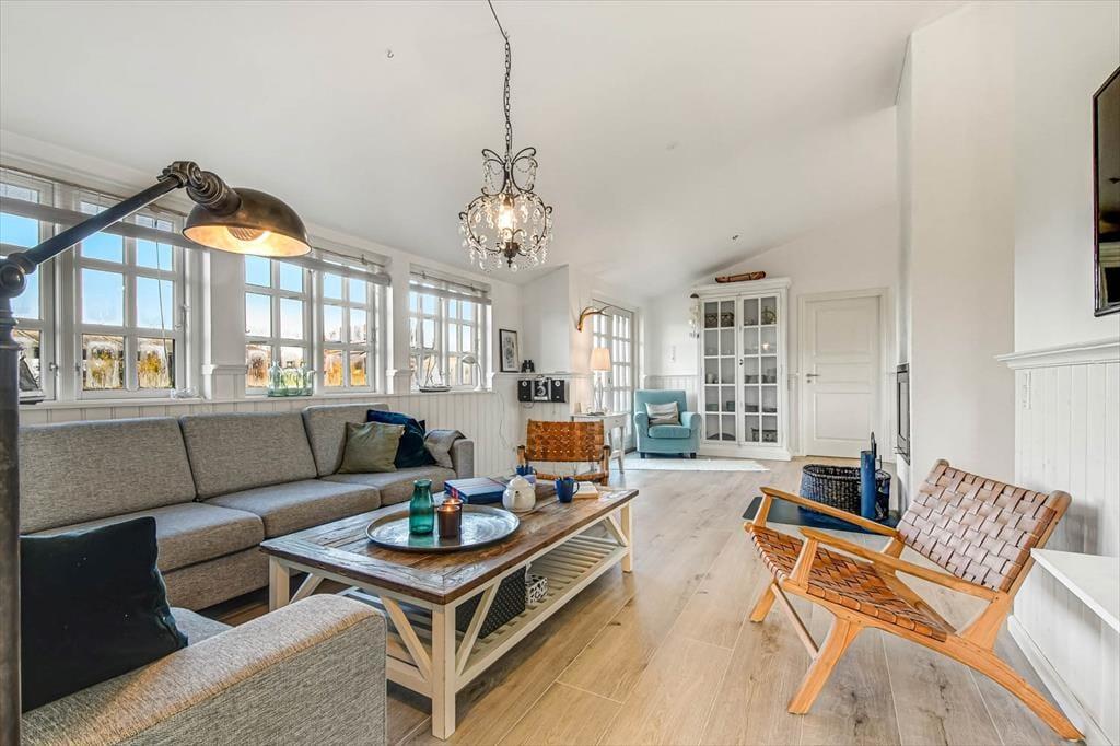 Når du træder indenfor i sommerhuset, mødes du af en varm og indbydende atmosfære, der straks får dig til at føle dig hjemme. Den åbne opholdsstue med loft til kip er et skønt samlingssted for familien, hvor brændeovnens knitrende varme spreder hygge på kølige dage. Store vinduespartier lukker lyset ind og skaber en forbindelse til den omkringliggende natur, mens det moderne køkken, der ligger i åben forbindelse med stuen, giver rig mulighed for at samles om madlavning og gode samtaler. Sommerhuset rummer også fine værelser med en behagelig stemning – perfekt til afslappende stunder efter en dag fuld af oplevelser.