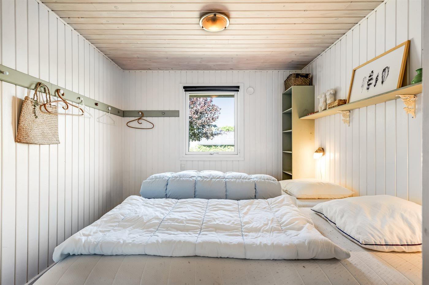 Der er i alt 3 soveværelser. Sovepladserne fordeler sig på: 4 sovepladser i dobbeltsenge. 2 sovepladser i køjeseng. Derudover er der 1 stk. barneseng.