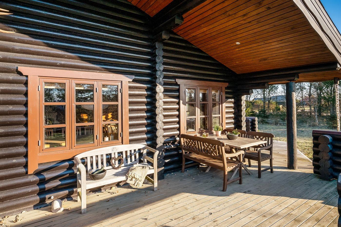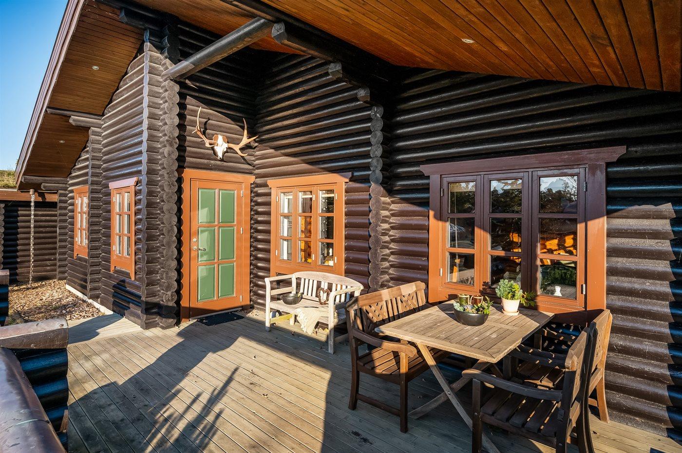 Ferieboligen er beliggende på en 1200 m² stor naturgrund. Der er 300 m til fjorden. Nærmeste forretning er beliggende i en afstand af 4000 m. Desuden er der 20 m² overdækket terrasse. Der er redskabsrum. Der er carport til rådighed.