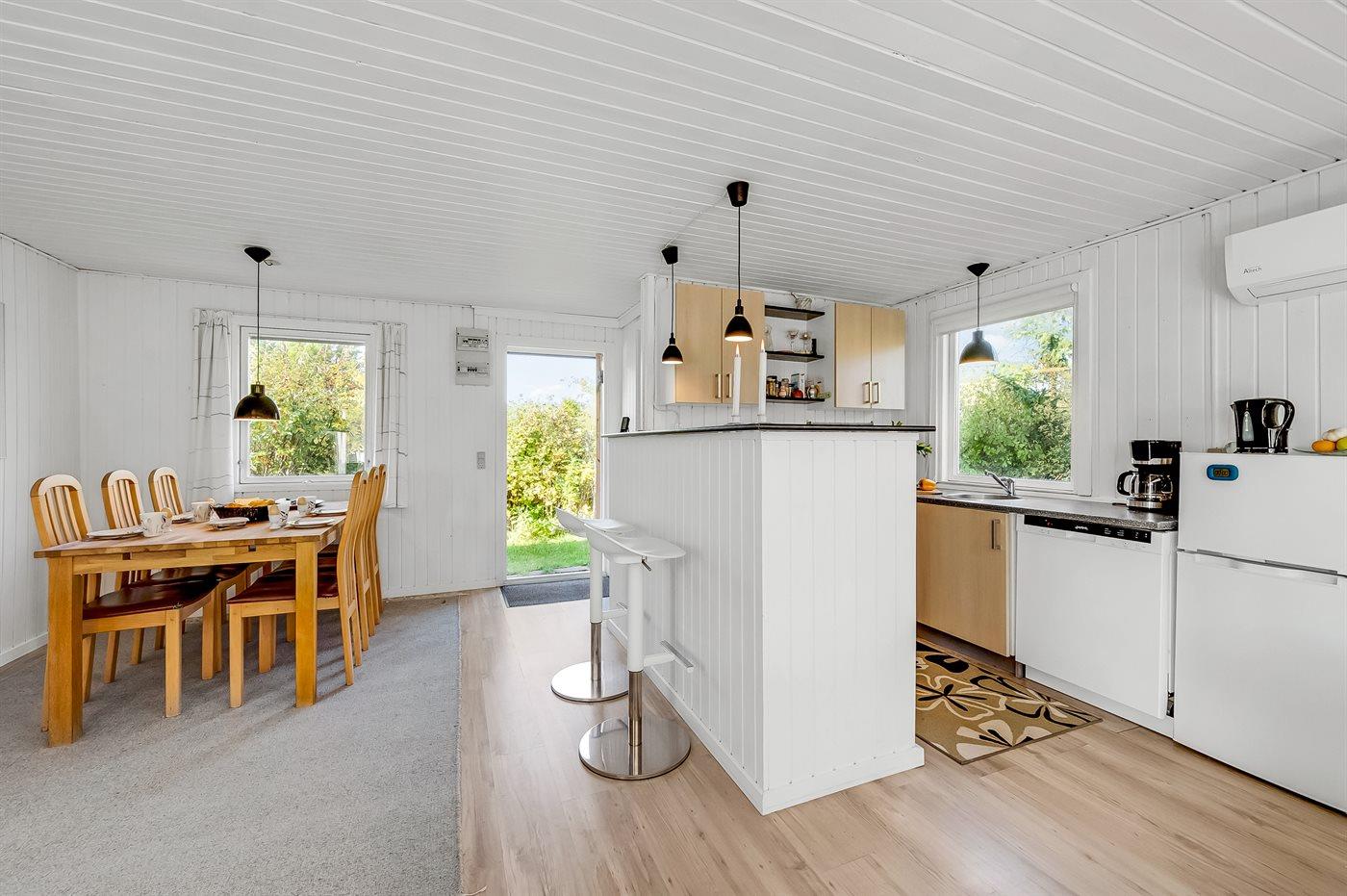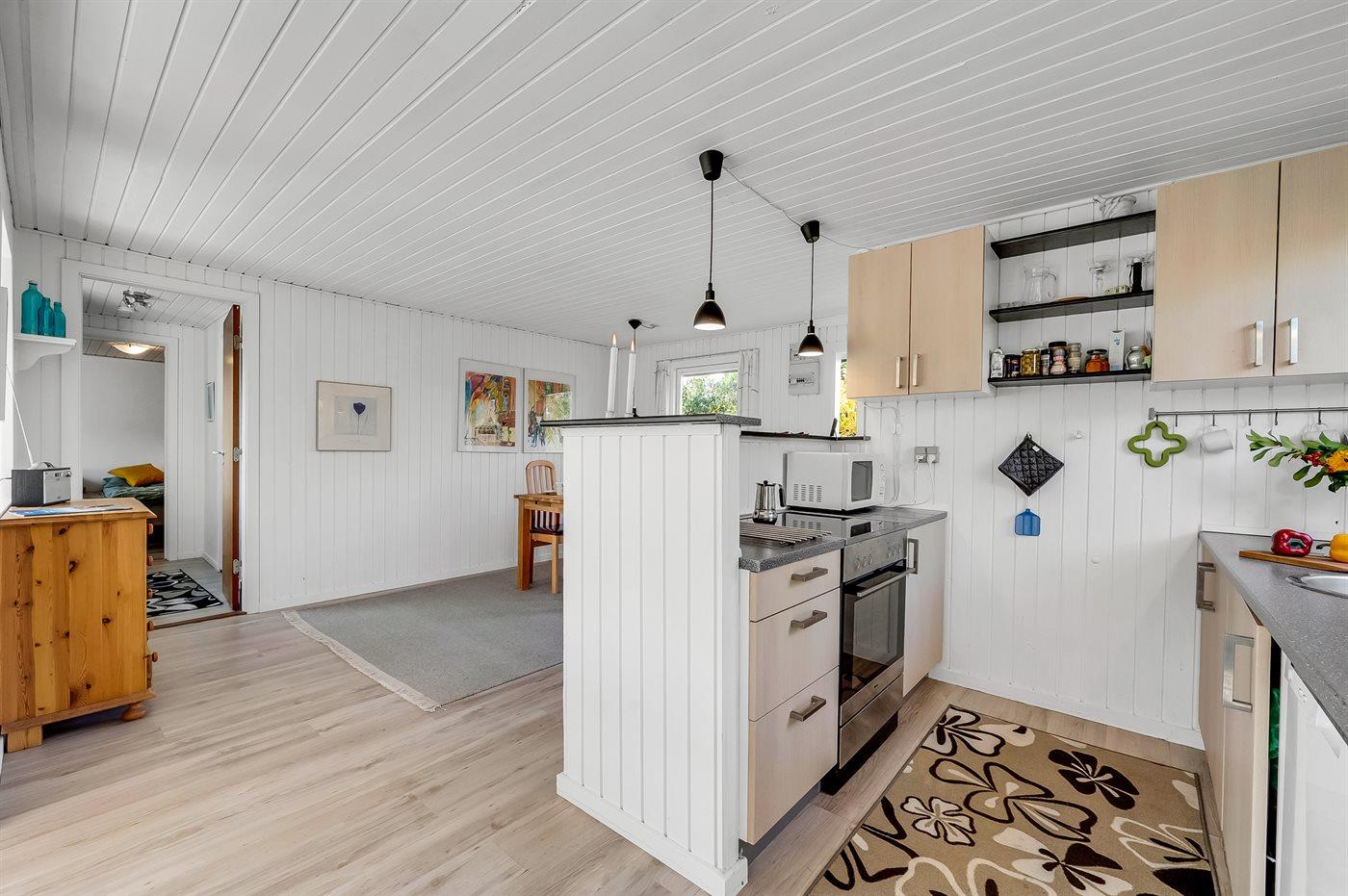 Køkkenet er udstyret med 1 køleskab. Der er 4 keramiske kogeplader, varmluftovn, mikrobølgeovn samt opvaskemaskine.