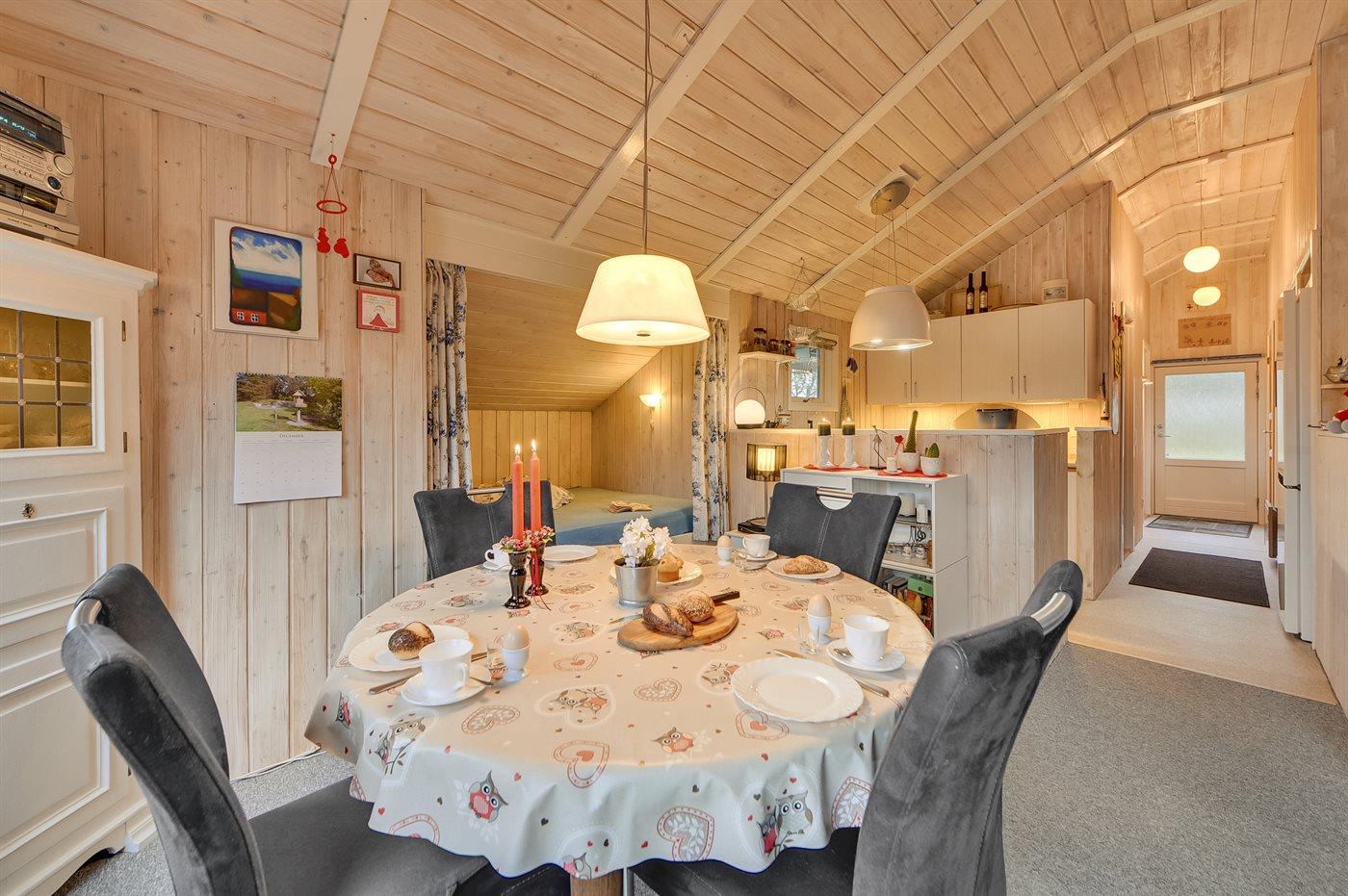 På en dejlig, indhegnet grund, ligger dette hyggelige og velplejede sommerhus - i et naturskønt område med gode aktivitetsmuligheder. Tag en tur til den lille havn i Stauning, hvor der er restauranter, hygge og atmosfære, eller til Skjern Å Dalen og oplev fuglelivet. Der er også mulighed for at tage en tur til Stauning Whiskydestilleri og smage den prisvindende Whisky. Bemærk, at 2 af husets sovepladser befinder sig i en alkove i opholdsstuen.