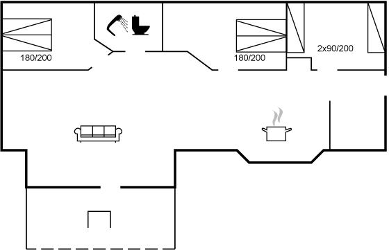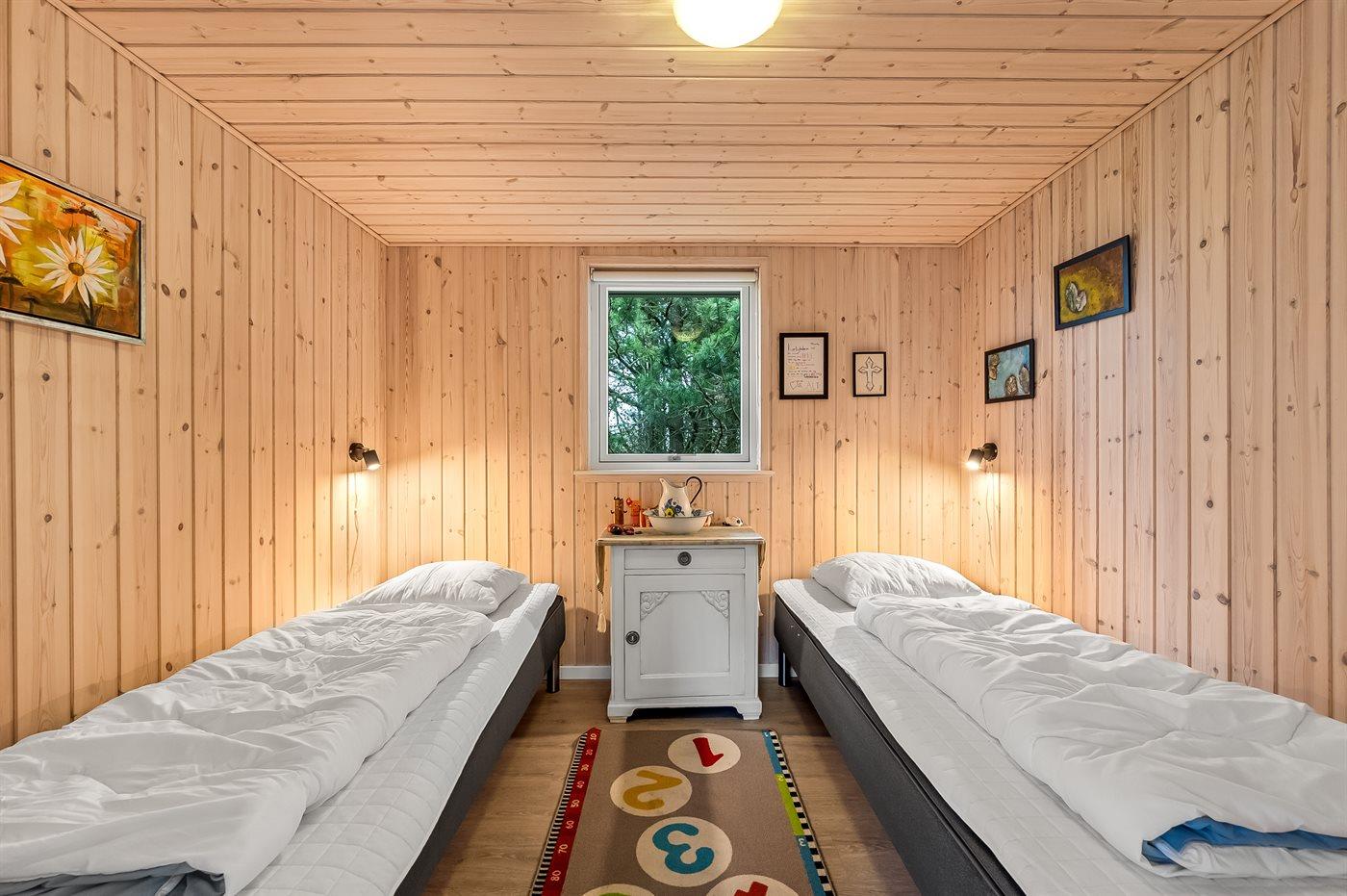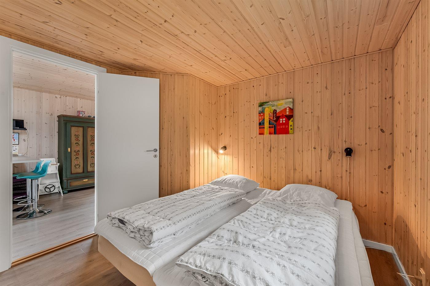 Der er i alt 3 soveværelser. Sovepladserne fordeler sig på: 4 sovepladser i dobbeltsenge. 2 sovepladser i enkeltsenge.