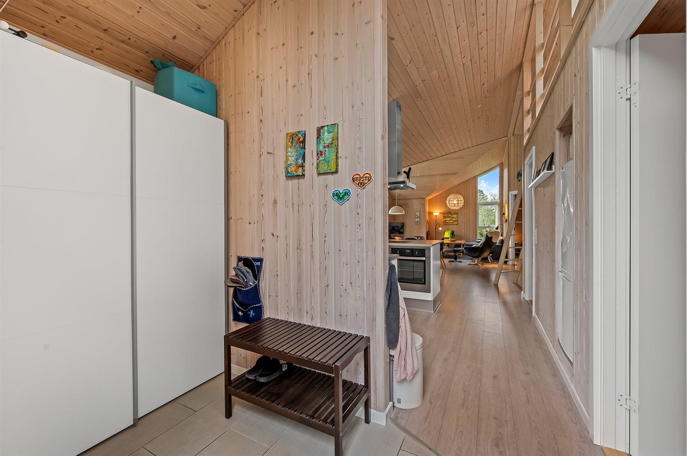 Sommerhuset egner sig til 6 personer. Ferieboligen er på 101 m² og er bygget i 2014. Det er tilladt at medbringe 1 husdyr. Ferieboligen er udstyret med 1 energibesparende luft til luft varmepumpe. Ferieboligen har vaskemaskine. Tørretumbler. Frysekapacitet på 60 liter. Der er desuden brændeovn.