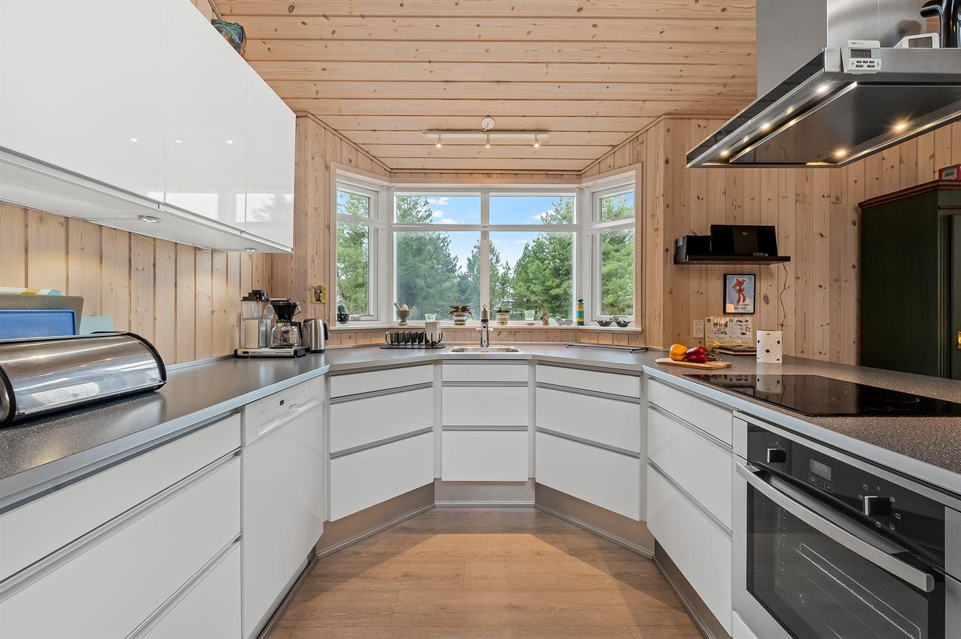 Køkkenet er udstyret med 1 køleskab. Der er 4 induktionskogeplader, varmluftovn, mikrobølgeovn samt opvaskemaskine.