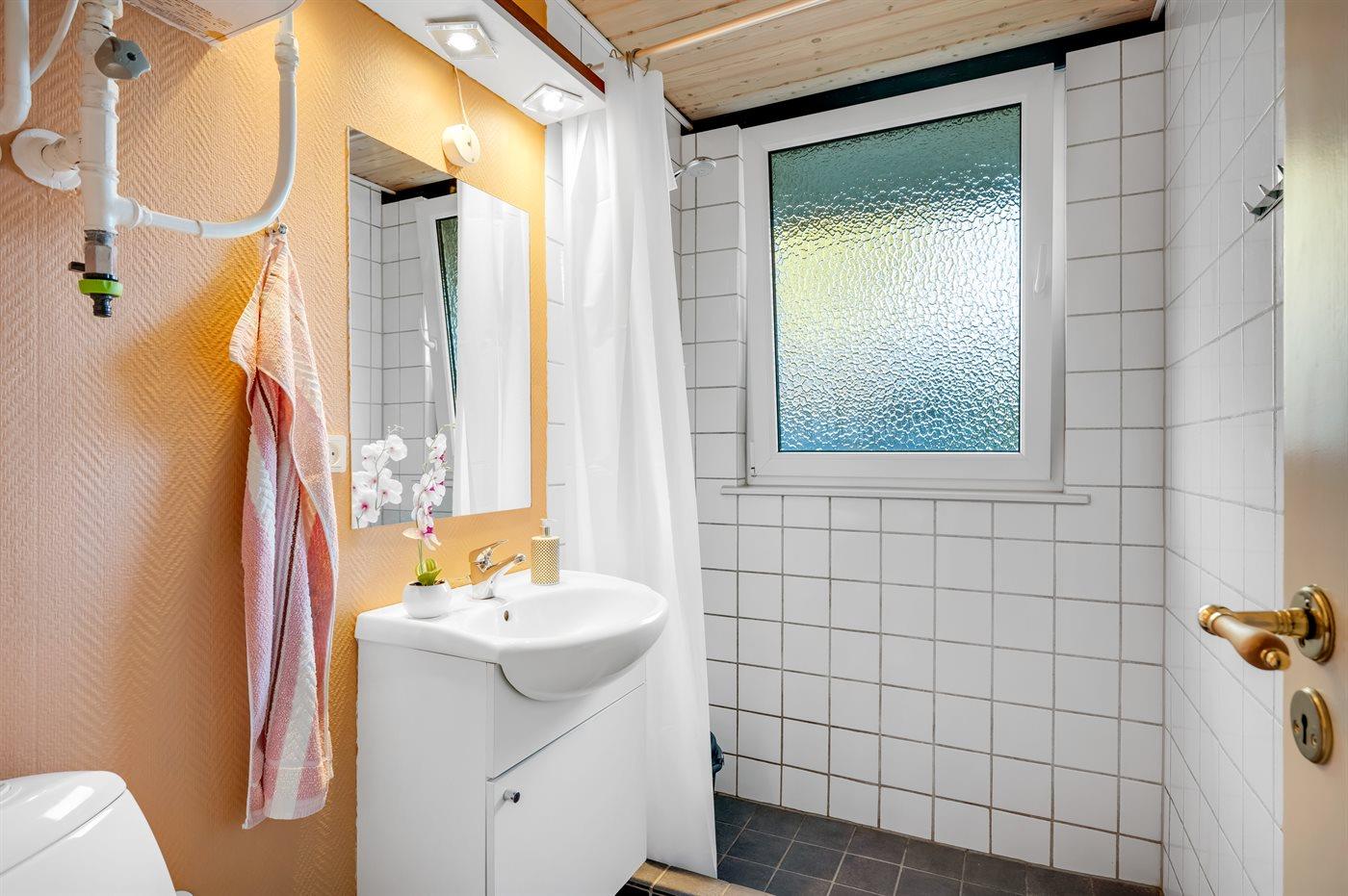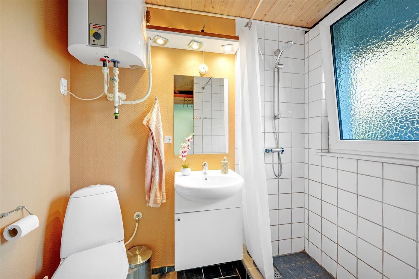 Der er 1 badeværelse med bruseniche og 1 toilet.