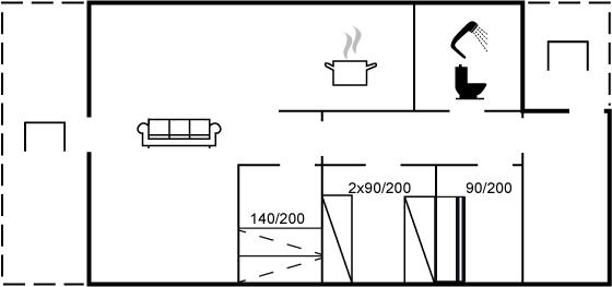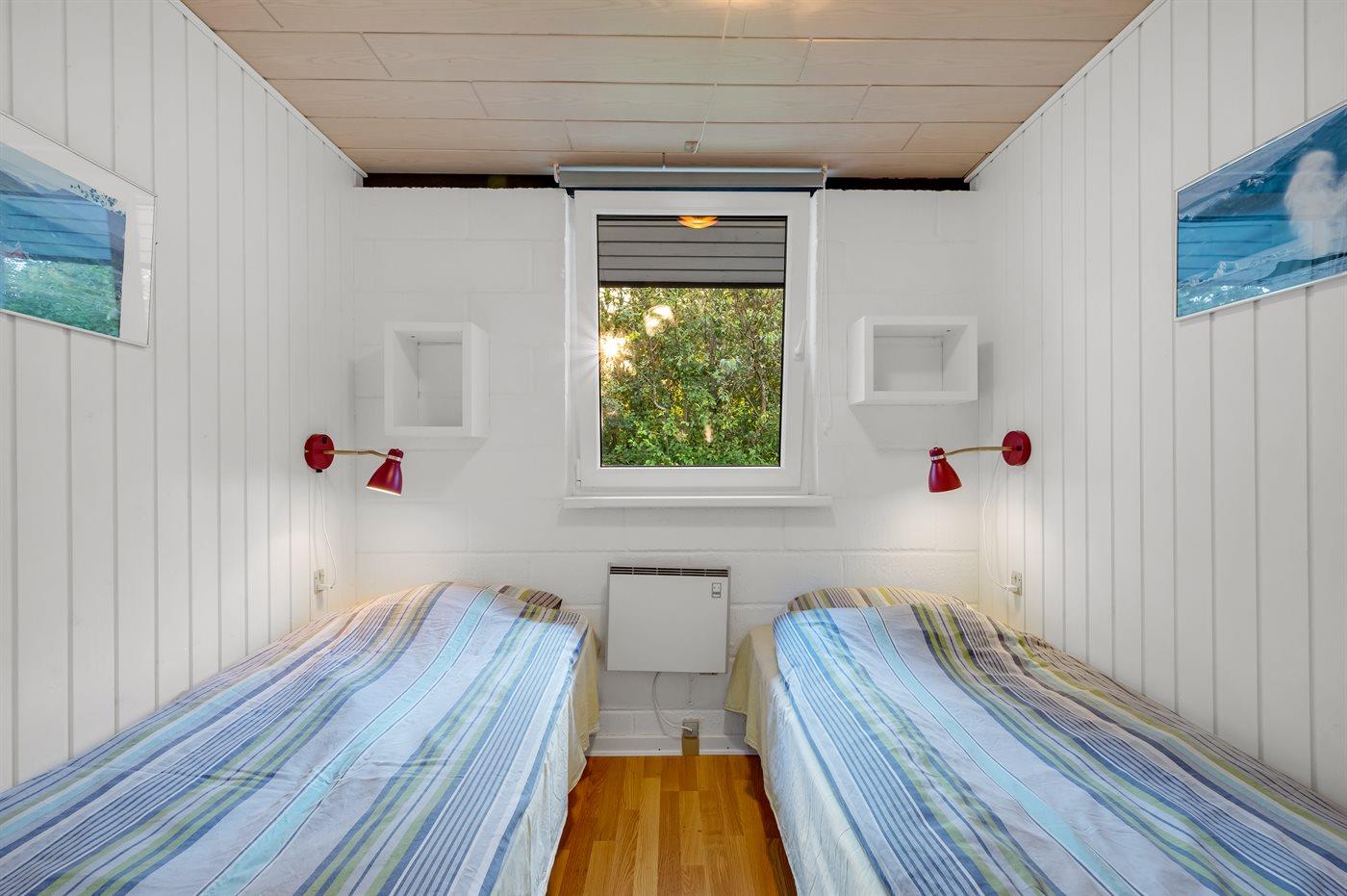 Der er i alt 3 soveværelser. Sovepladserne fordeler sig på: 2 sovepladser i enkeltsenge. 2 sovepladser i køjeseng. 2 sovepladser i sovesofa (dobbelt). Derudover er der 1 stk. barneseng.