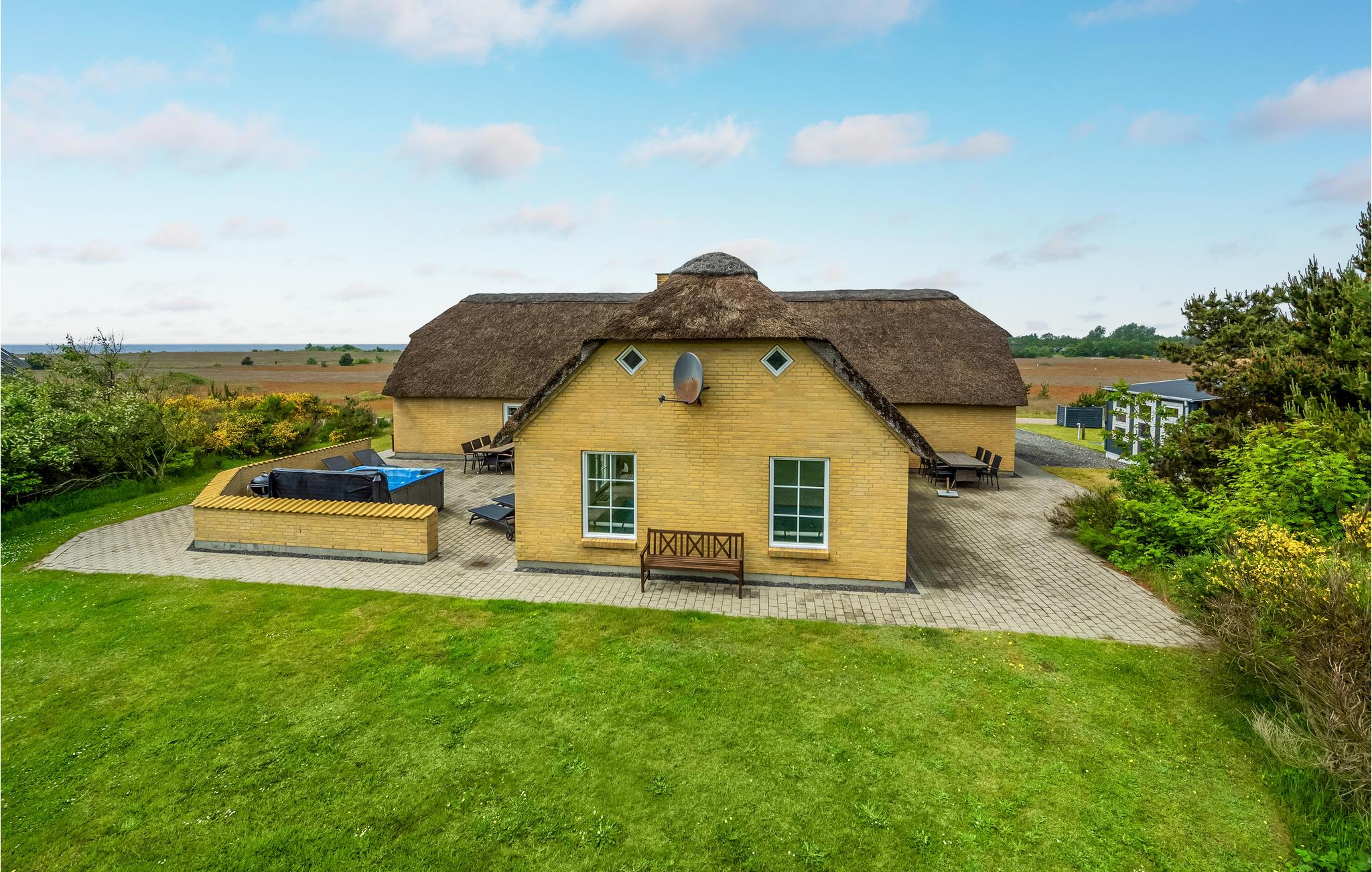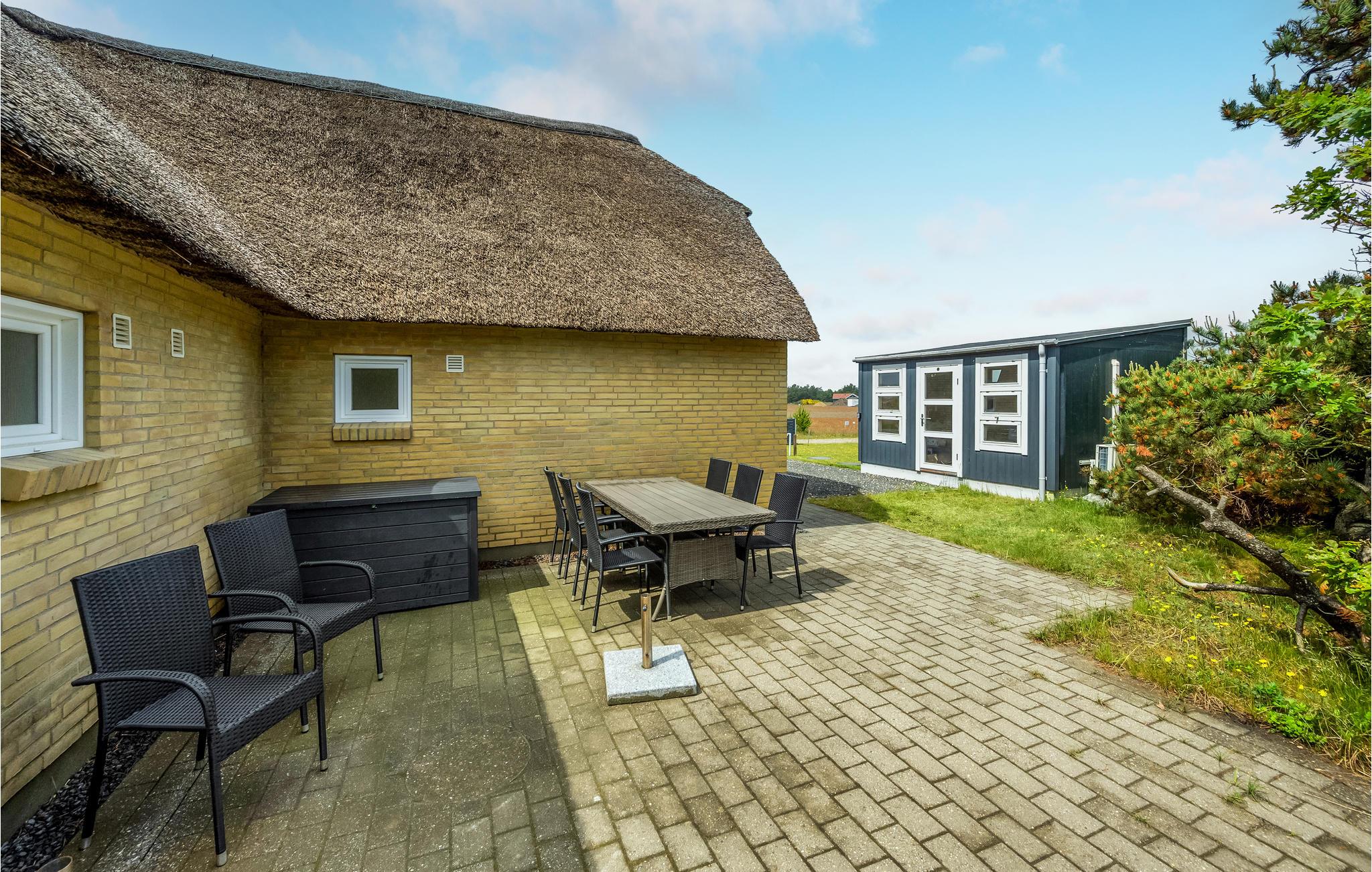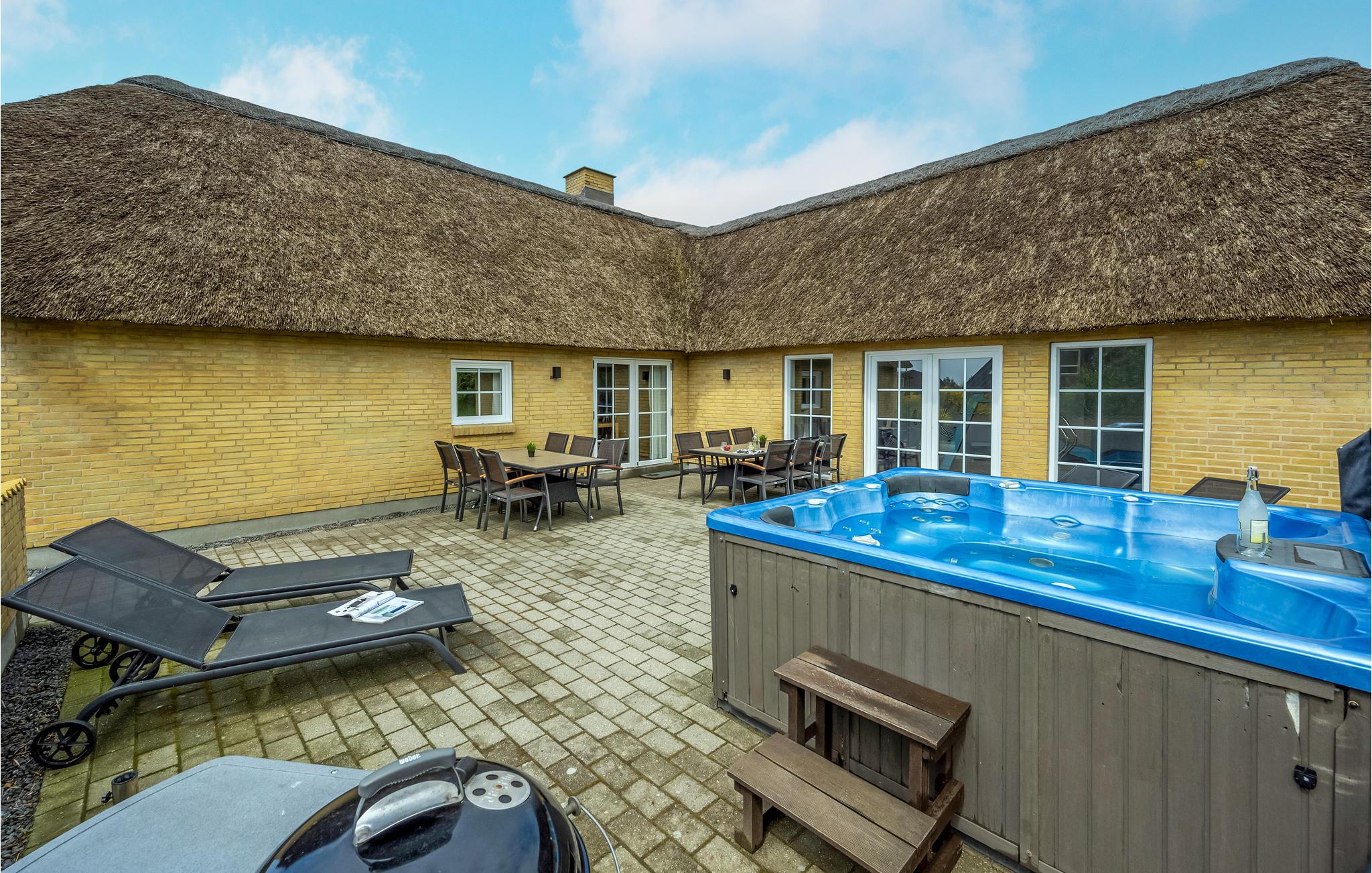 Kunne I tænke jer, at ligge i en varm og dejlig udendørs spa med en pragtfuld udsigt over den fantastiske natur? Så er dette velindrettede feriehus med plads til den store familie et perfekt valg uanset årstid. Med den skønne beliggenhed, kun 300 m fra Ringkøbing Fjord, er der rige muligheder for gode naturoplevelser, hvor bl.a det mangfoldige fugleliv kan betragtes. I kan boltre jer i den store swimmingpool med rutsjebane eller nyde den opvarmede standvandsspa både indendørs og udendørs. Efter en lang gåtur i den skønne natur kan en tur i den varme sauna også anbefales. Køkkenet er udstyret med diverse moderne bekvemmeligheder og ligger i åben forbindelse med opholdsstuen med brændeovn, hvorfra der er udgang til terrassen. Soveværelserne er opdelt i to afdelinger i hver sin ende af huset. Hver afdeling har tre gode soveværelser samt et badeværelse. Derudover findes der et badeværelse i poolafdelingen. Området er fredfyldt med kort afstand til den idylliske lystbådehavn i Stauning, hvor der også findes en badestrand. Huset er velegnet til to familier.