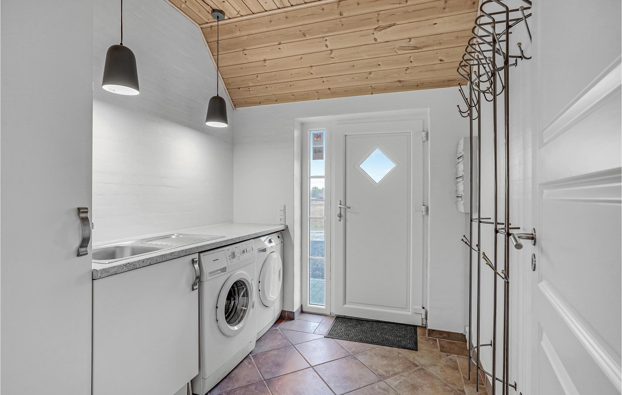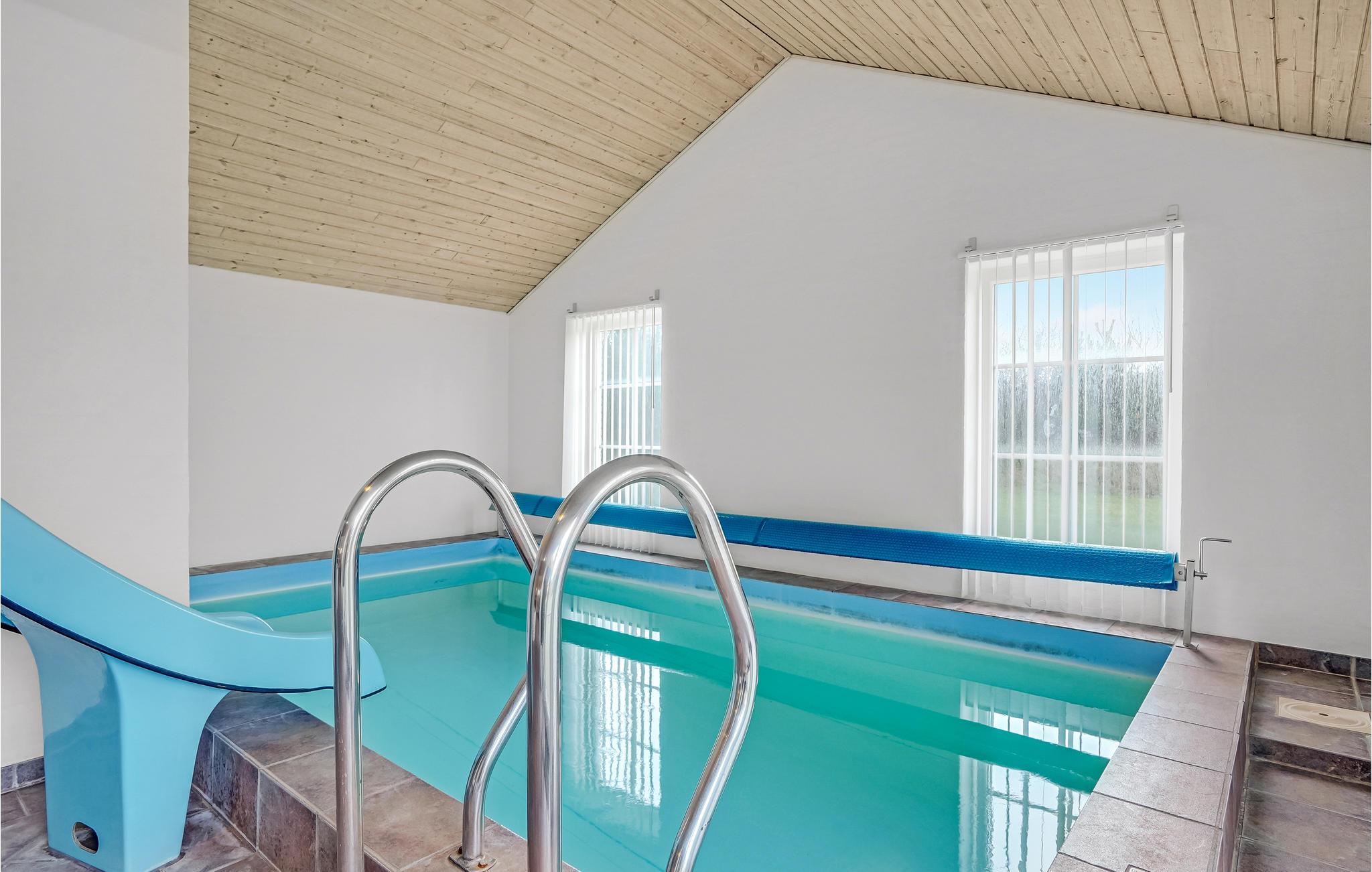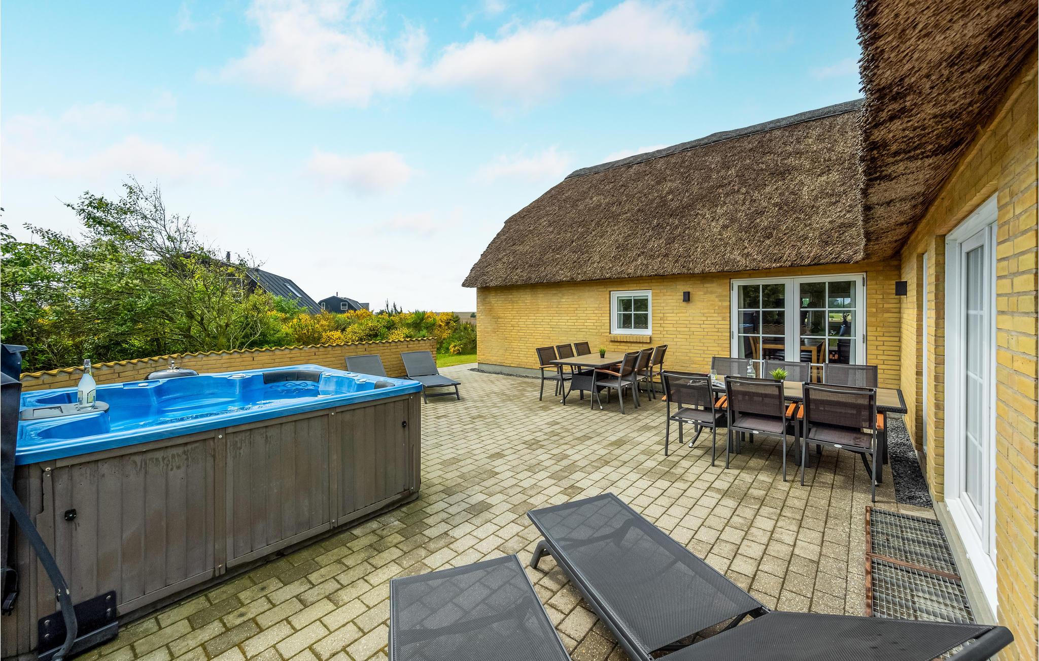 Kunne I tænke jer, at ligge i en varm og dejlig udendørs spa med en pragtfuld udsigt over den fantastiske natur? Så er dette velindrettede feriehus med plads til den store familie et perfekt valg uanset årstid. Med den skønne beliggenhed, kun 300 m fra Ringkøbing Fjord, er der rige muligheder for gode naturoplevelser, hvor bl.a det mangfoldige fugleliv kan betragtes. I kan boltre jer i den store swimmingpool med rutsjebane eller nyde den opvarmede standvandsspa både indendørs og udendørs. Efter en lang gåtur i den skønne natur kan en tur i den varme sauna også anbefales. Køkkenet er udstyret med diverse moderne bekvemmeligheder og ligger i åben forbindelse med opholdsstuen med brændeovn, hvorfra der er udgang til terrassen. Soveværelserne er opdelt i to afdelinger i hver sin ende af huset. Hver afdeling har tre gode soveværelser samt et badeværelse. Derudover findes der et badeværelse i poolafdelingen. Området er fredfyldt med kort afstand til den idylliske lystbådehavn i Stauning, hvor der også findes en badestrand. Huset er velegnet til to familier.