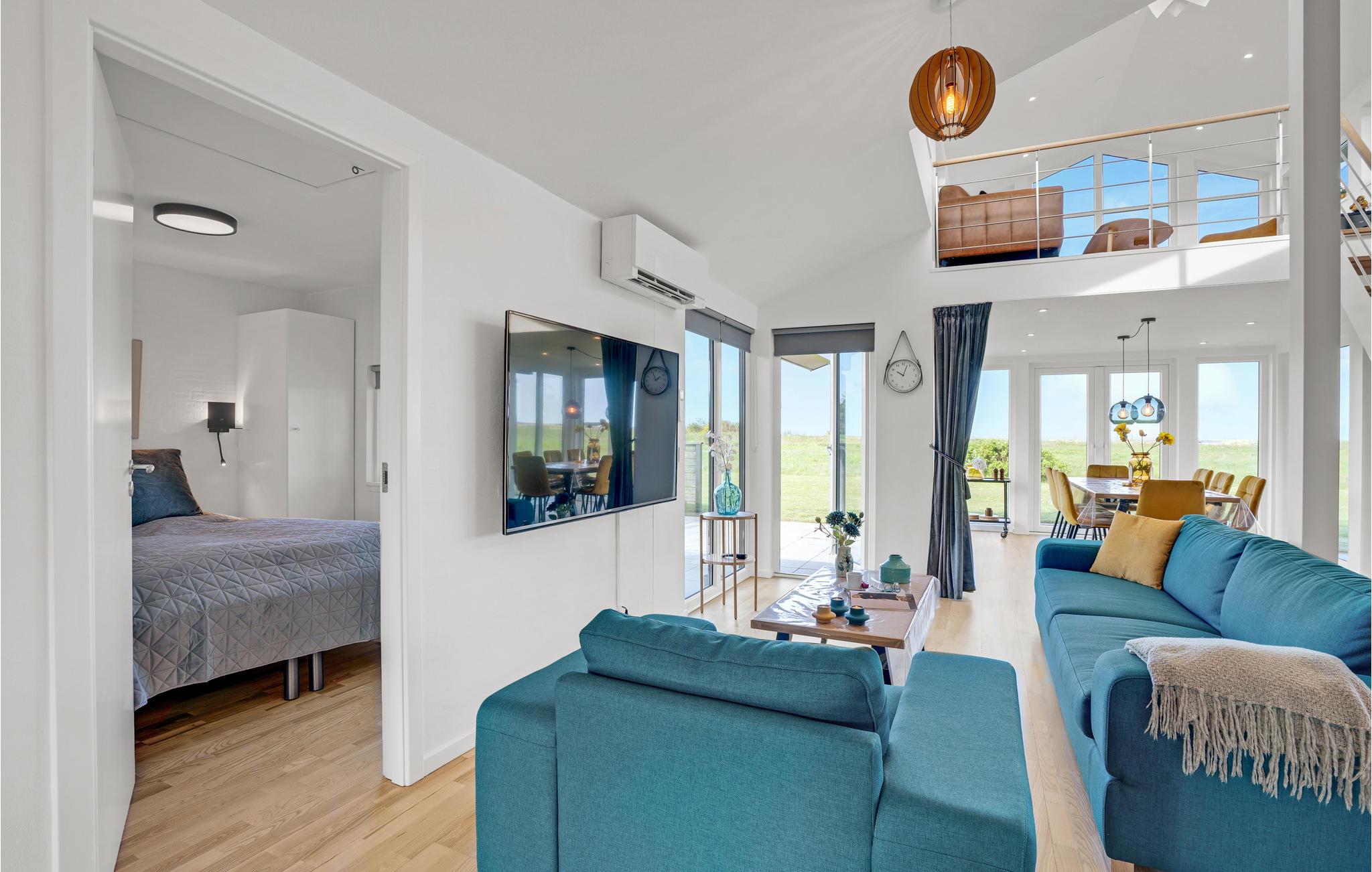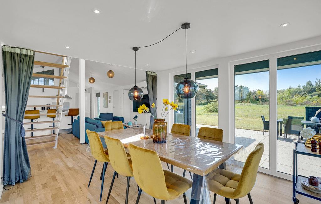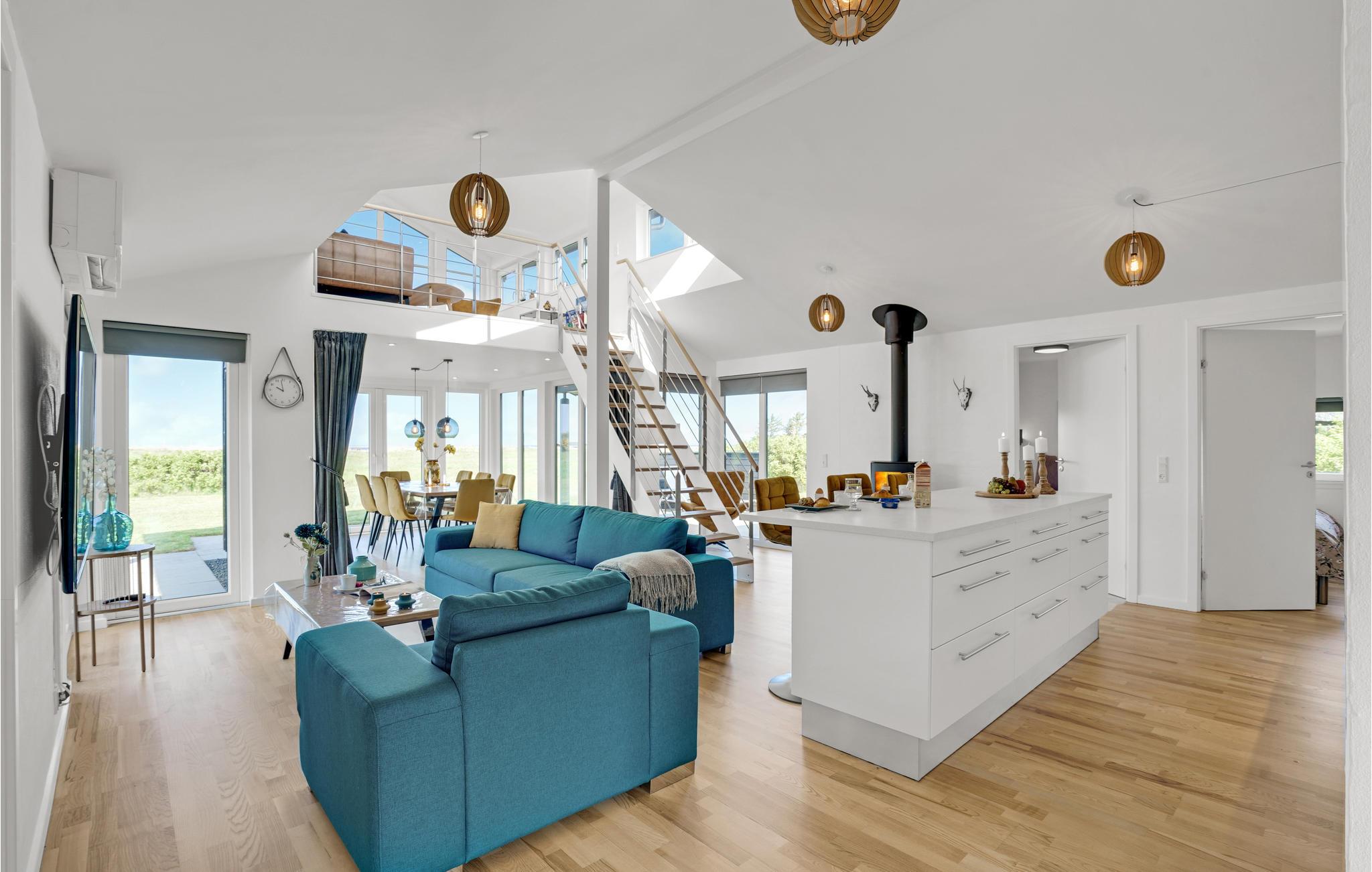 Kom med familie eller venner til dette smukke og stilfulde feriehus med panoramaudsigt i Vestjylland. I kan virkelig føle jer hjemme i de rummelige værelser med lyse træpaneler. Huset er indrettet med kvalitet og design for øje, så alt hvad I skal gøre er at føle jer godt tilpas med at lave mad, spille og se film i den åbne og lysåbne stue. I haven kan børnene boltre sig og slå sig løs, indtil I kalder til fælles middag på terrassen. Slap af efter begivenhedsrige dage og nyd det smukke vejr med en solnedgang, der er værd at se.