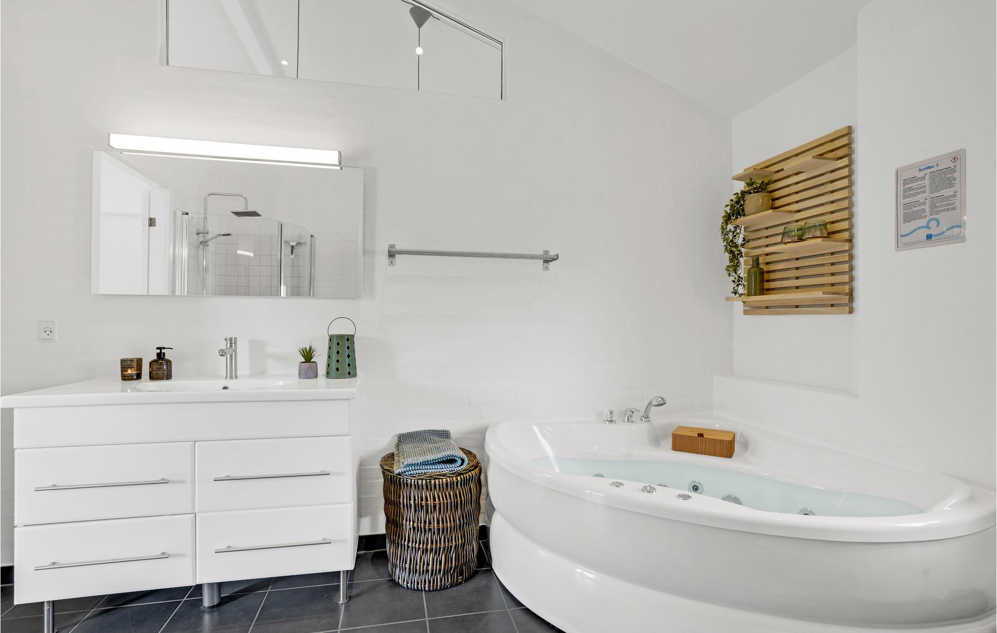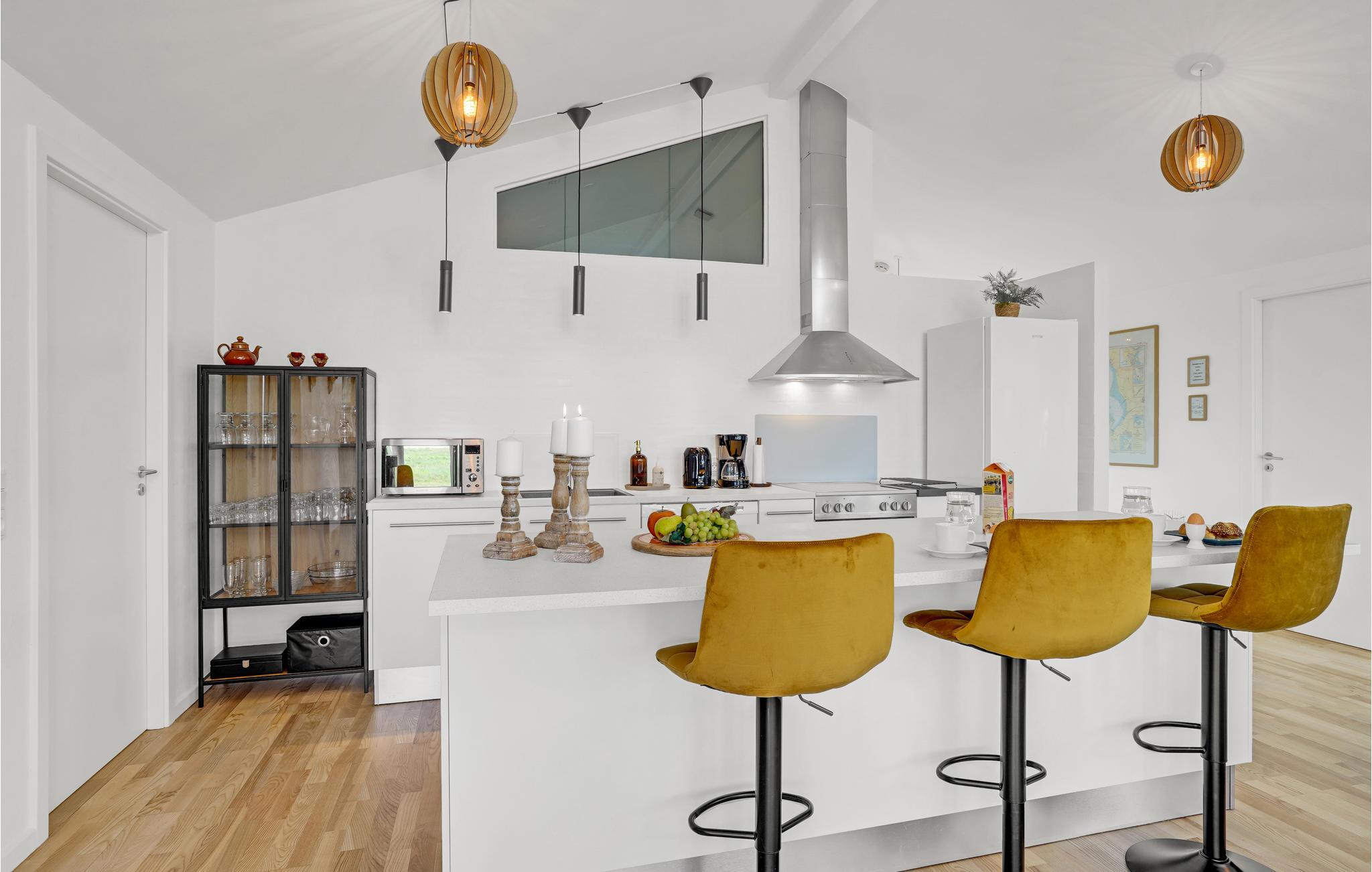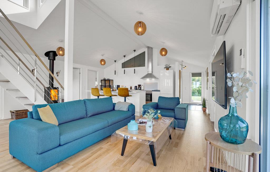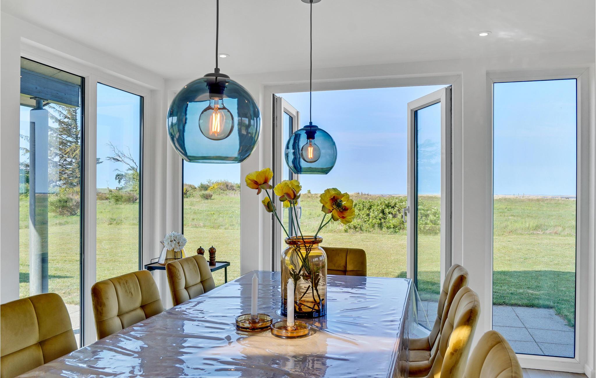 Kom med familie eller venner til dette smukke og stilfulde feriehus med panoramaudsigt i Vestjylland. I kan virkelig føle jer hjemme i de rummelige værelser med lyse træpaneler. Huset er indrettet med kvalitet og design for øje, så alt hvad I skal gøre er at føle jer godt tilpas med at lave mad, spille og se film i den åbne og lysåbne stue. I haven kan børnene boltre sig og slå sig løs, indtil I kalder til fælles middag på terrassen. Slap af efter begivenhedsrige dage og nyd det smukke vejr med en solnedgang, der er værd at se.