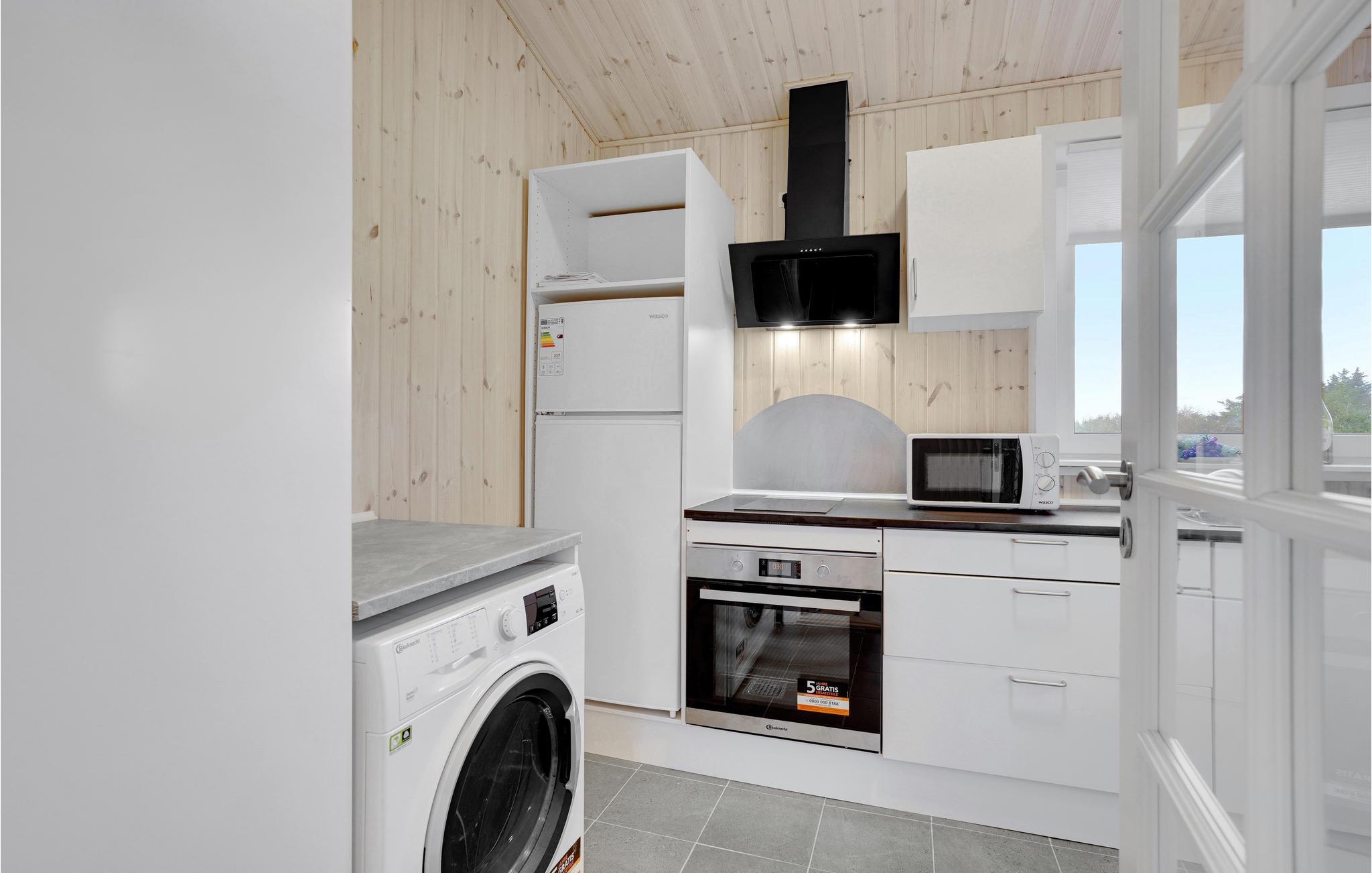 Glæd jer til et afslappende ophold i dette skønne træhus. Huset er lyst, attraktivt indrettet og hyggeligt takket være trævægge, gulve- og lofter. I det veludstyrede køkken kan I tilberede lækre feriemåltider og samtidig kigge ind til de andre gæster i stuen gennem små vinduer. Om aftenen kan I hygge jer med kort/brætspil eller en god film på fladskærmen. Højdepunktet ved dette hus er dog badeværelset, hvor I kan få varmen i saunaen efter en frisk gåtur ved fjorden eller afslutte en skøn feriedag med en drink i spabadet.