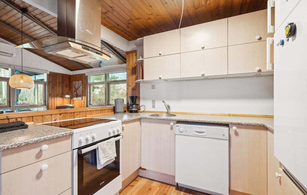 Nyd roen ved Ringkøbing Fjord og tilbring en afslappende ferie i dette veludstyrede feriehus. Huset, der er kendetegnet ved store vinduer og træbeklædning på vægge og lofter, er det ideelle sted til sjovt og hyggeligt samvær med familien. Kom helt ned i gear i dette feriehus og nyd sammen fælles madlavning, spil og filmaftener. I den store have kan I selv bestemme, om I vil drikke jeres kaffe på terrassen eller tumle rundt i haven med jeres børn.