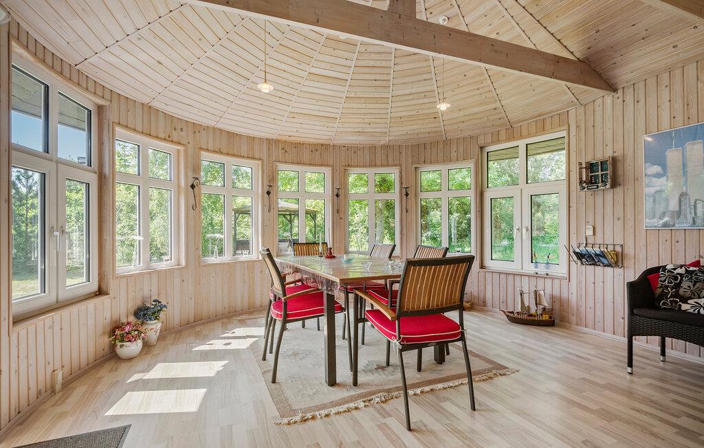 Charmerende træhus nær Ringkøbing Fjord med spabad, udestue og overdækket terrasse.