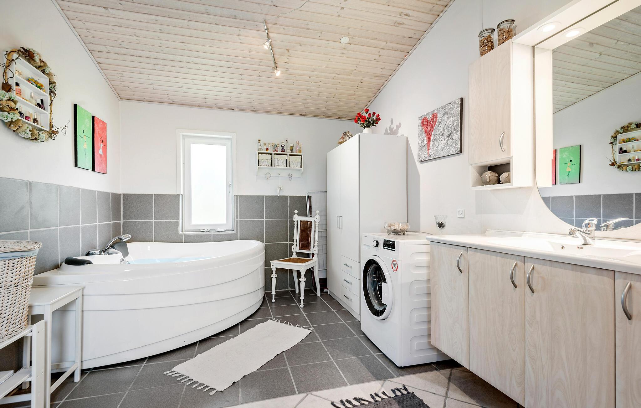 Velkommen til dette attraktive hus, der ligger i fredelige omgivelser tæt på fjorden og lidt nord for Stauning. Indvendigt emmer det af idyl med velholdte træpaneler, loft til kip og et komfortabelt møblement, der gør det nemt at slappe af med det samme, I ankommer. Hvis vejret bider lidt fra sig, kan I tænde op i brændeovnen, der giver varme og et knitrende lydtapet til madlavningen i det veludstyrede køkken. Dæk op til en dejlig aftensmad i udestuen med udsigt til haven, hiv brætspillene frem eller rund aftenen af med en velfortjent tur i spabadet.