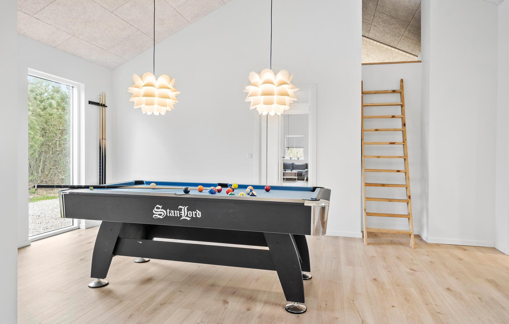 Rejs til Vestjylland med den udvidede familie eller en større venneflok og glæd jer til dette fremragende feriehus, hvor I får alt, I kunne drømme om til en ferie med sjov for alle aldre. Huset byder på mange kvadratmeter og en moderne indretning med kvalitet over hele linjen. Prikken over i'et er dog pool-afdelingen. På dage med gråvejr kan børnene plaske rundt og brænde energi af i poolen, mens de voksne finder sig godt til rette i spabadet eller sveder igennem i saunaen. Efter en lækker aftensmad kan I udfordre hinanden til dueller med dart, airhockey eller ved pool-bordet, inden I runder af med en god film i stuen.