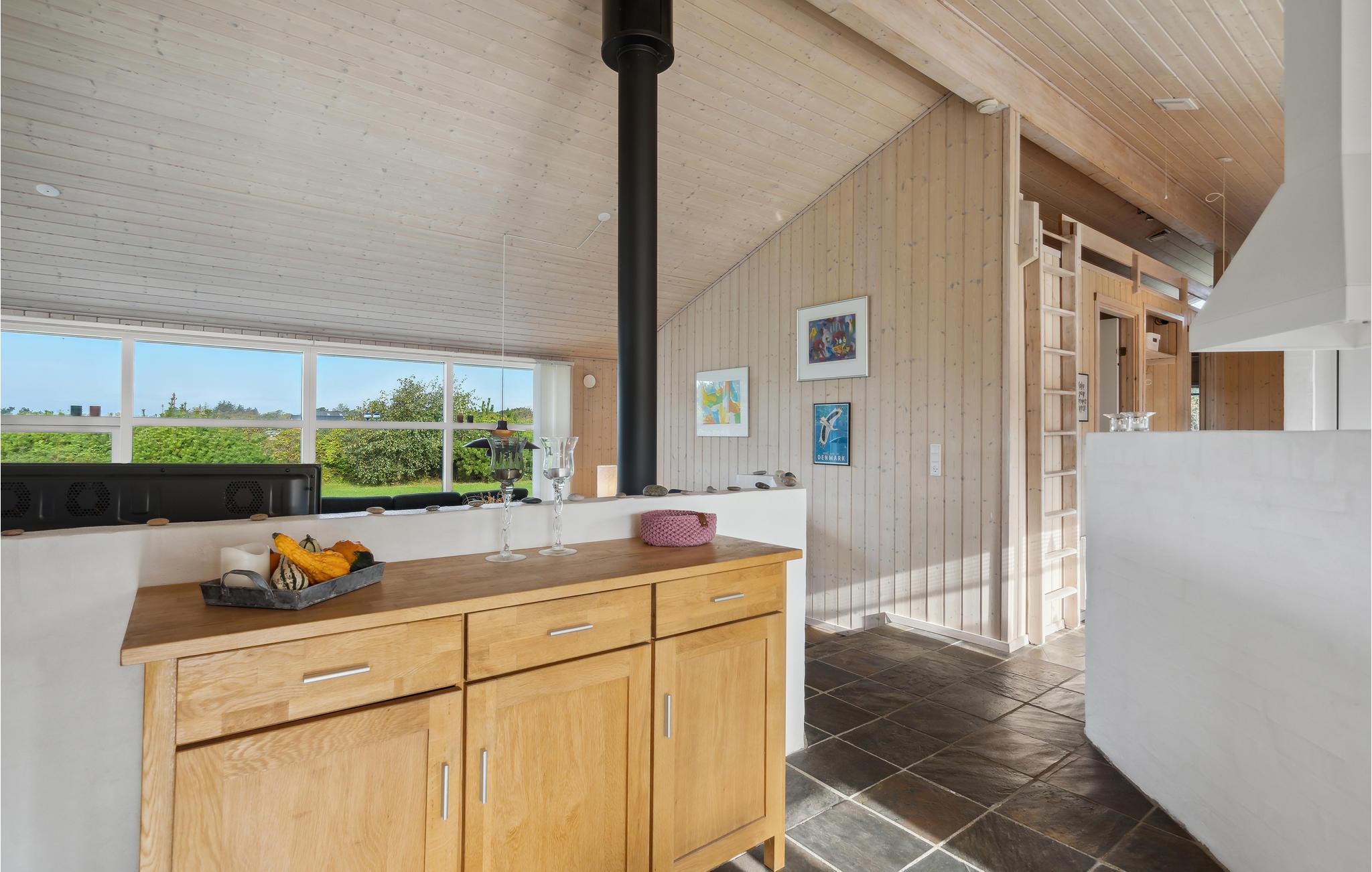 Velkommen til den enestående natur ved Ringkøbing Fjord og dette indbydende hus, som ligger på en dejlig lys grund i ugenerte rammer. Sæt jer godt til rette i den hyggelige stue med bøger, brætspil eller strikketøjet og nyd udsigten til de grønne omgivelser, mens ilden knitrer i brændeovnen. Huset er godt udstyret med alt, hvad I skal bruge til jeres feriedage. Nyd solen på terrassen, mens fuglene synger i trætoppene, og tænd op i grillen på de lune sommeraftener.