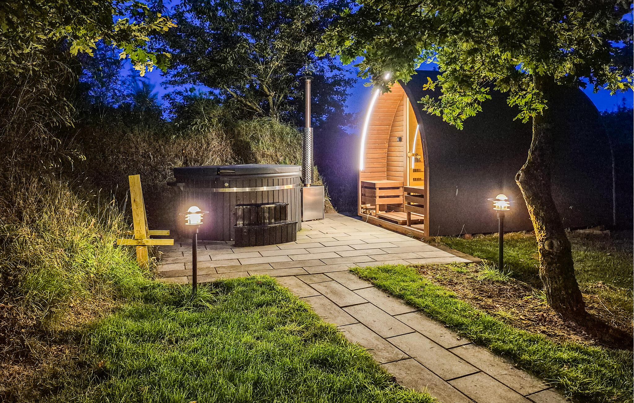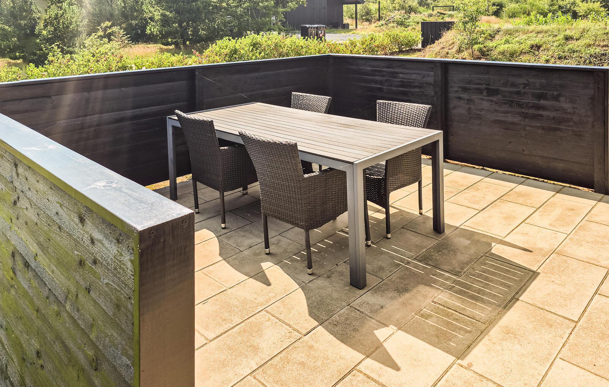 Nyd den delvist overdækkede terrasse med morgenkaffen og avisen på bordet. Her er også oplagt at bruge aftentimerne, når I skal nyde maden fra grillen. I kan slutte aften af med tur i vildmarksbadet under åben himmel.