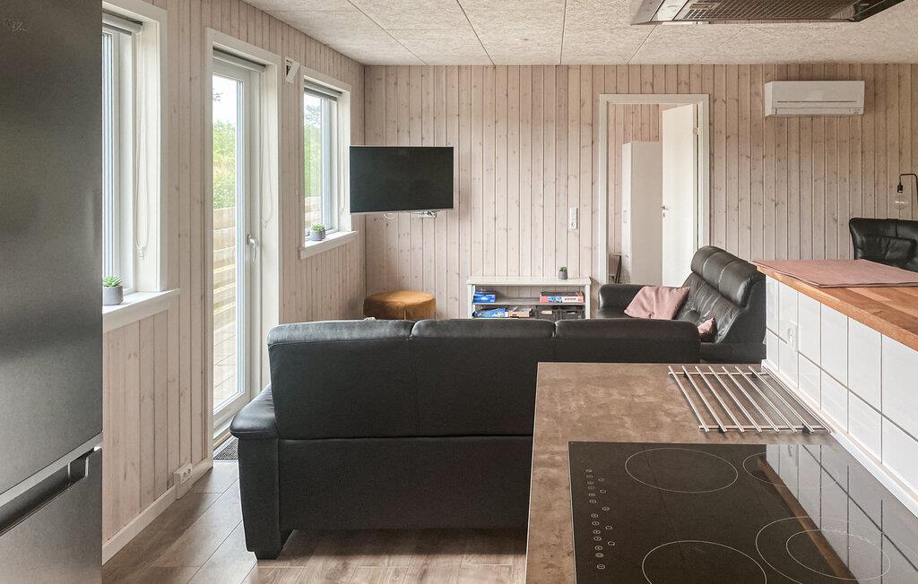 Tilbring næste familieferie her i dette hyggelige træhus. Indvendig er huset beklædt med lyst træ og mange vinduer, som sørger for et naturligt lysindfald. I alrummet er der plads til både afslapning i sofaen, hyggelige kreative aktiviteter ved det lange spisebord, og eksperimentering af lækker mad i køkkenet.