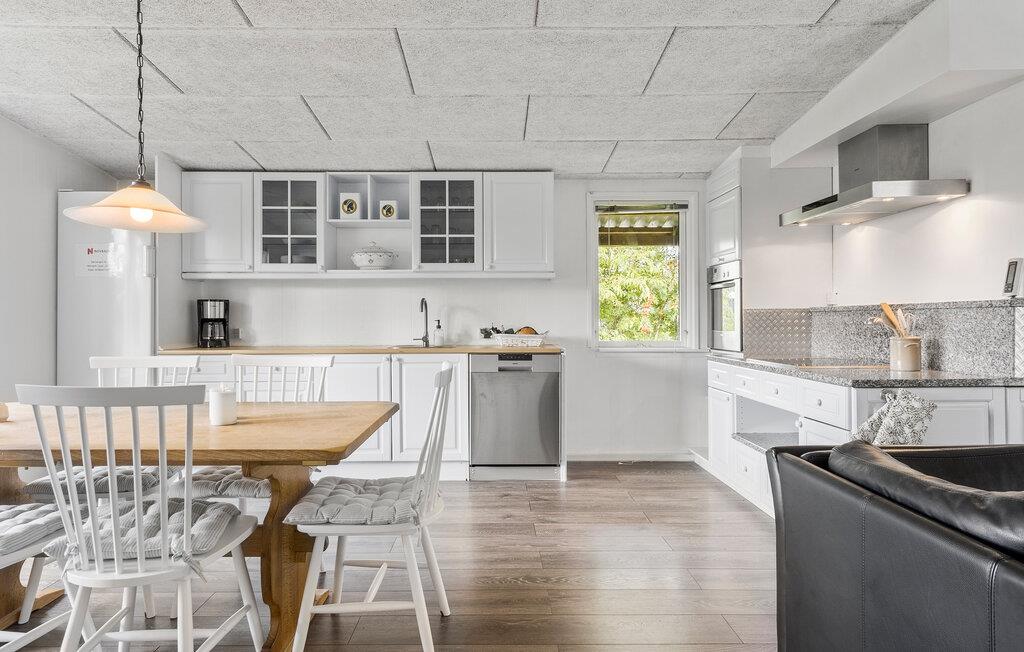 Velkommen til dette indbydende hus, en lille gåtur fra fjorden, hvor I rigtig kan nyde jeres feriedage. Boligen er lys og moderne med store lysindfald, så her får I gode rammer til at slappe af og koncentrere jer om at holde fri. Efter en lang dag med spændende oplevelser kan I dække op til en middag med udsigt til den grønne have og lægge planer for jeres næste udflugter og aktiviteter.