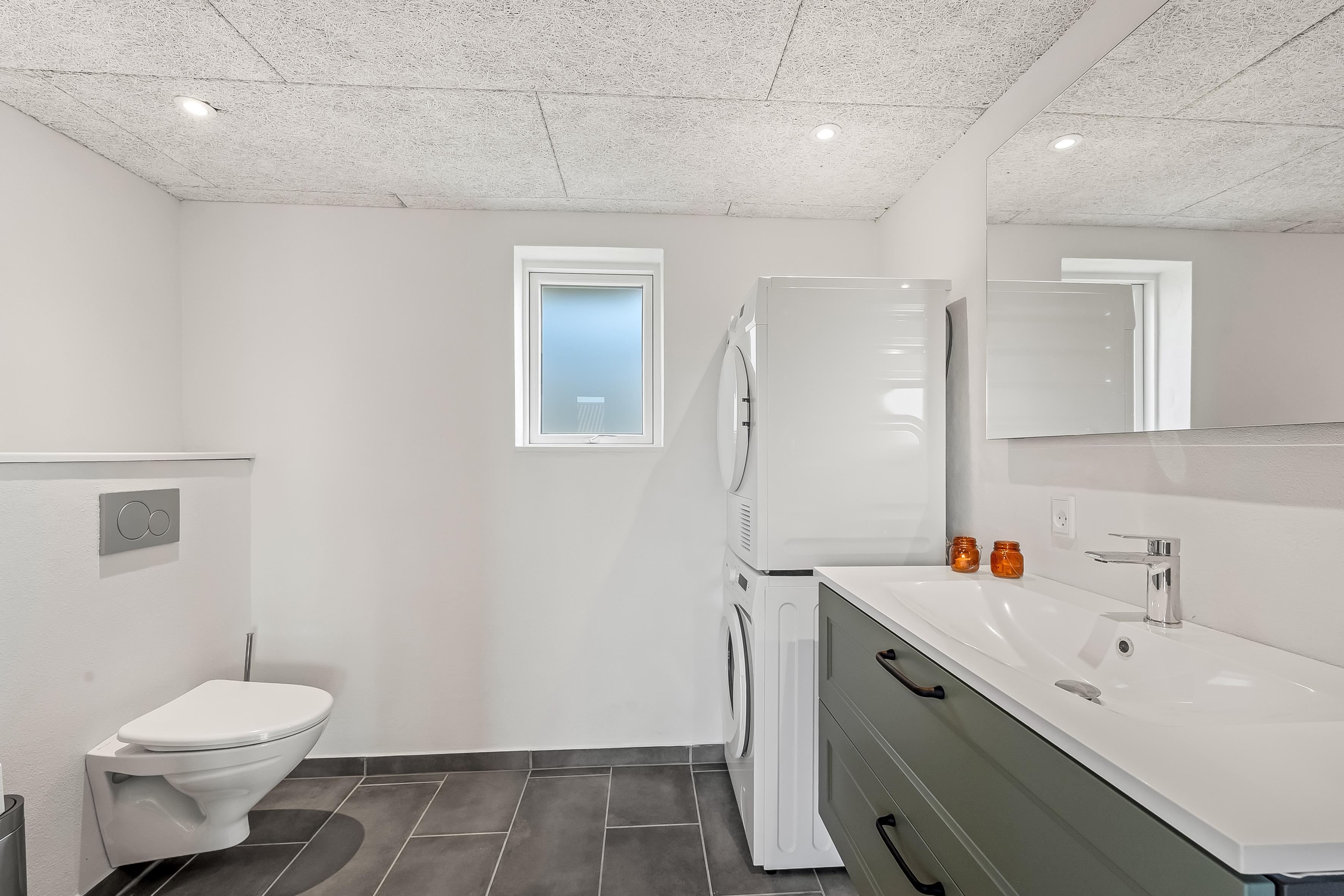 Huset er udstyret med moderne faciliteter, der gør dit ophold så behageligt som muligt. Du vil finde en energibesparende varmepumpe, som også kan fungere som air condition og gulvvarme på badeværelset, så du kan justere temperaturen efter dit behov. Køkkenet er udstyret med et induktionskomfur, ovn, mikrobølgeovn, opvaskemaskine, køleskab og fryser med 63 liter kapacitet, hvilket gør madlavning og opbevaring af mad en leg.
