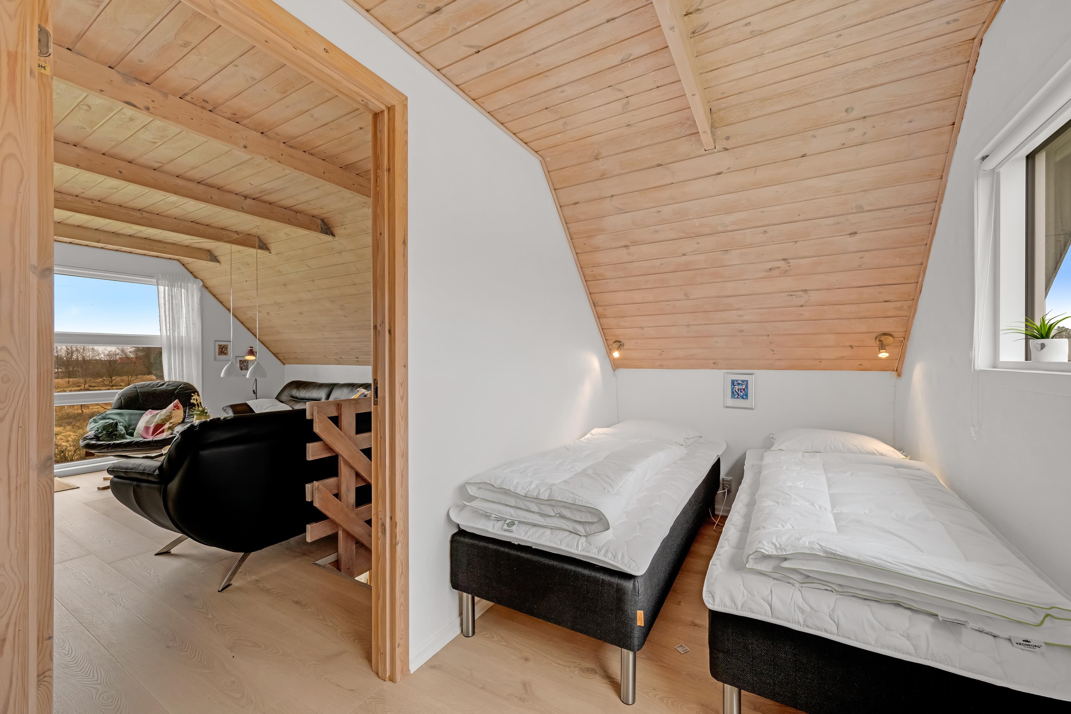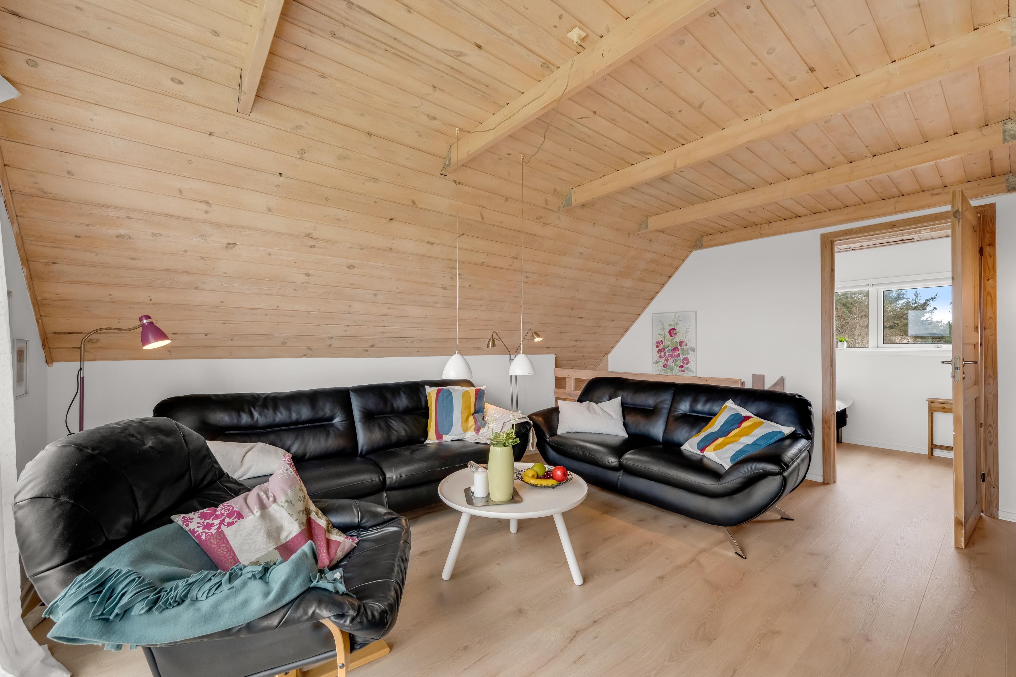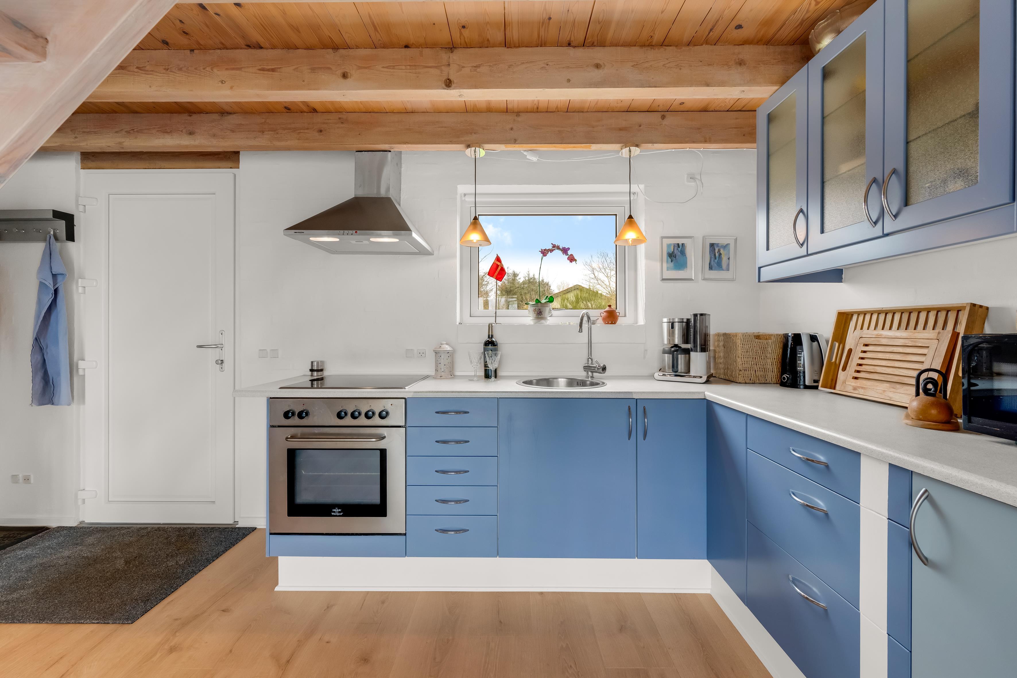 Den betagende udsigt fra huset, mod fjorden, havnen og over fiskesøen, er en af de mest fremtrædende træk. Du vil kunne nyde den fredelige atmosfære og betragte solnedgangen fra den overdækkede terrasse eller den åbne terrasse, som begge er perfekte til udendørs spisning eller bare til at slappe af med en god bog. Med en afstand på kun 100 meter til vandet, er det let at tage en dukkert eller nyde en dag ved stranden.