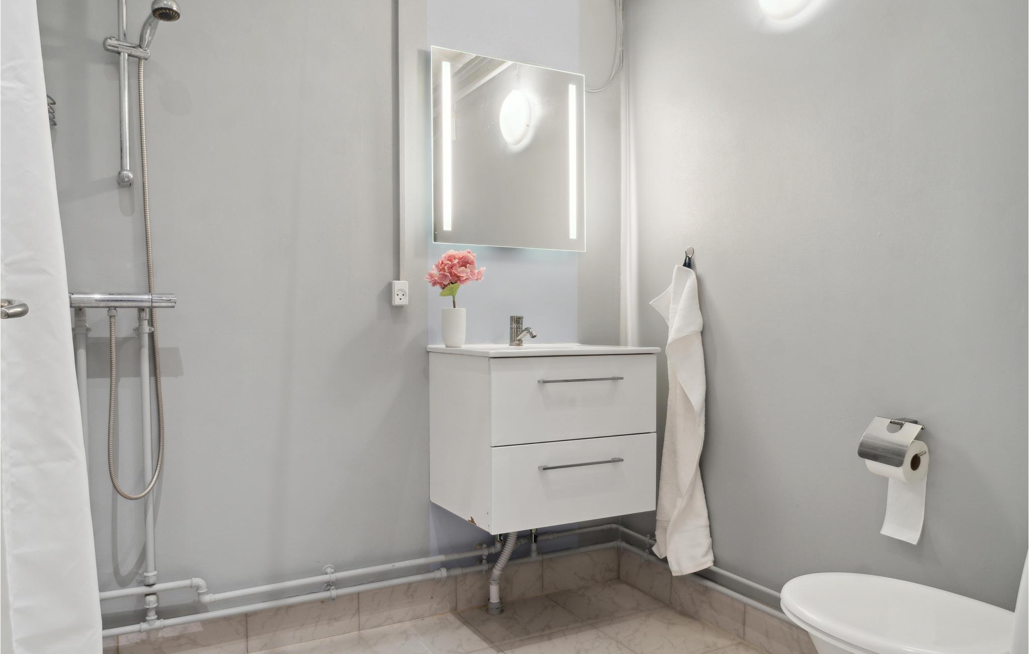 Badeværelse (nr. 1) - WC. Varmt og koldt vand. Bruser