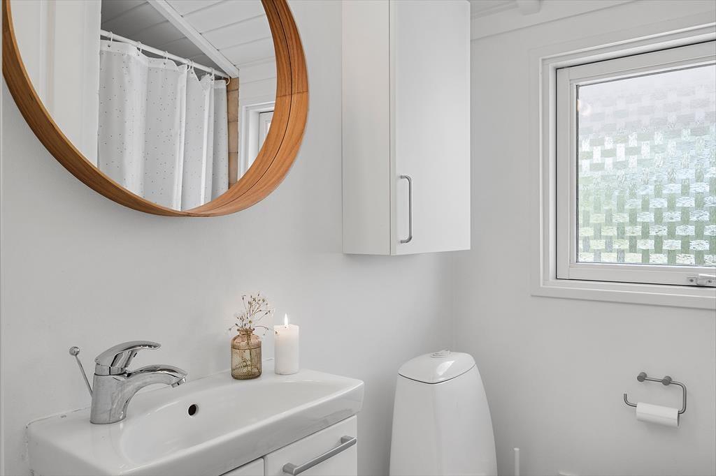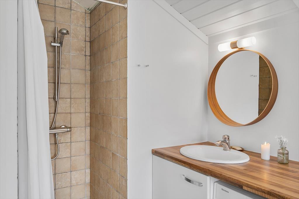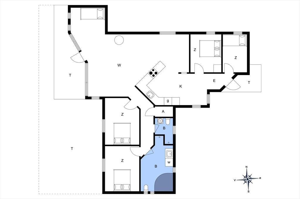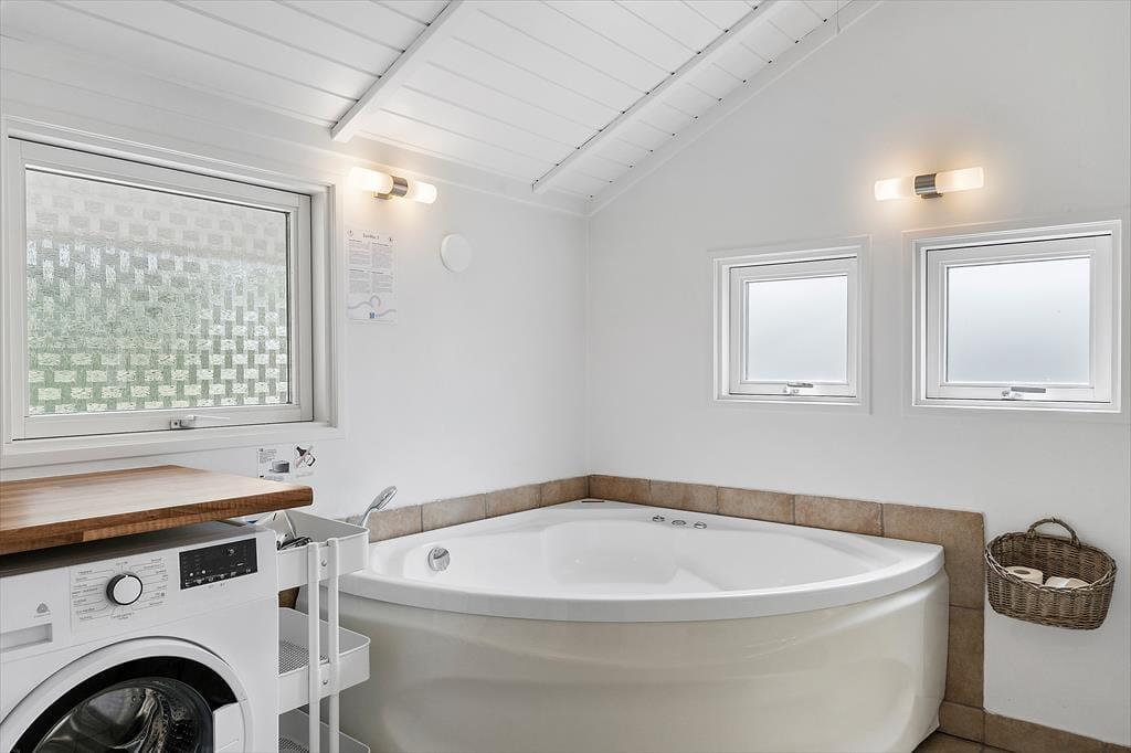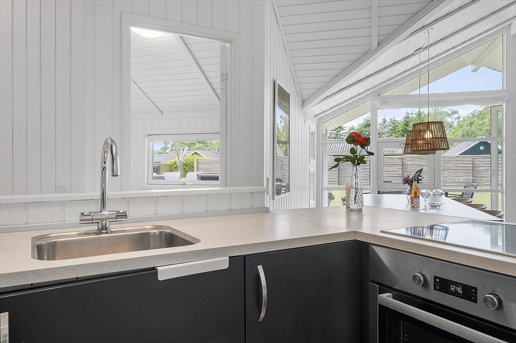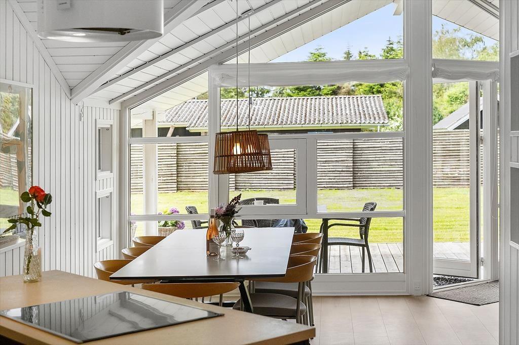 Feriehuset som er nyrenoveret i 2023 er velholdt og velindrettet. Der er loft til kip i alle rum. Feriehuset er indrettet med kombineret køkken og opholdsstue. Lækkert funktionelt køkken som indeholder kogeplader, indbygget ovn, emhætte, mikroovn, opvaskemaskine, køleskab og fryser. Opholdsstue med store vinduespartier, hvilket giver et godt lysindfald i huset. Fra opholdsstuen er der udgang til en delvis overdækket terrasse. I stuen er der god spiseplads, hjørnesofa, brændeovn, TV med danske DR kanaler, parabol med tyske kanaler, og Chromecast med mulighed for streaming (kræver eget login). To badeværelser med brusenicher, klinkegulv, og gulvvarme. I det ene badeværelse er der desuden SPA-bad og vaskemaskine. Fire soveværelser, alle med dobbeltsenge (2 enkeltsenge som er sat sammen). Herudover er der en alkove i opholdsstuen med mulighed for to sovepladser. Der er desuden både barneseng og barnestol til rådighed. Opvarmning af huset foregår via varmepumpe, brændeovn og elvarme.